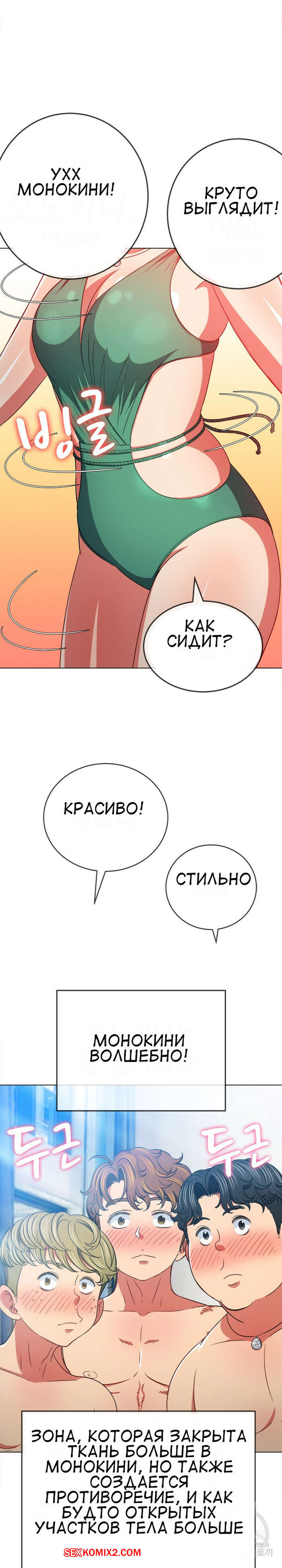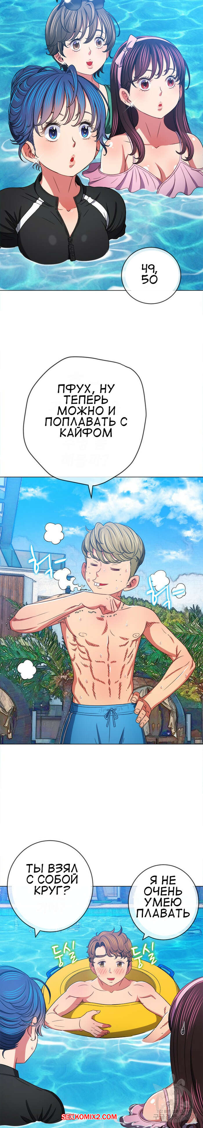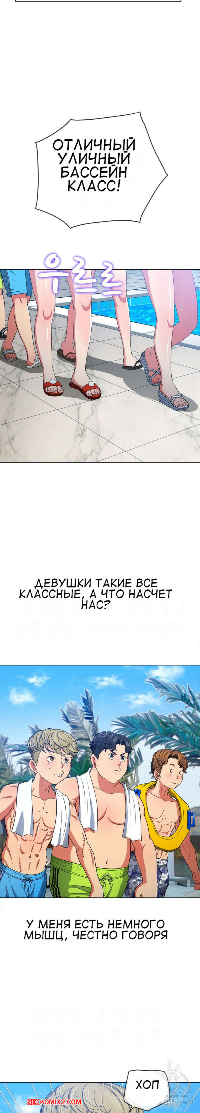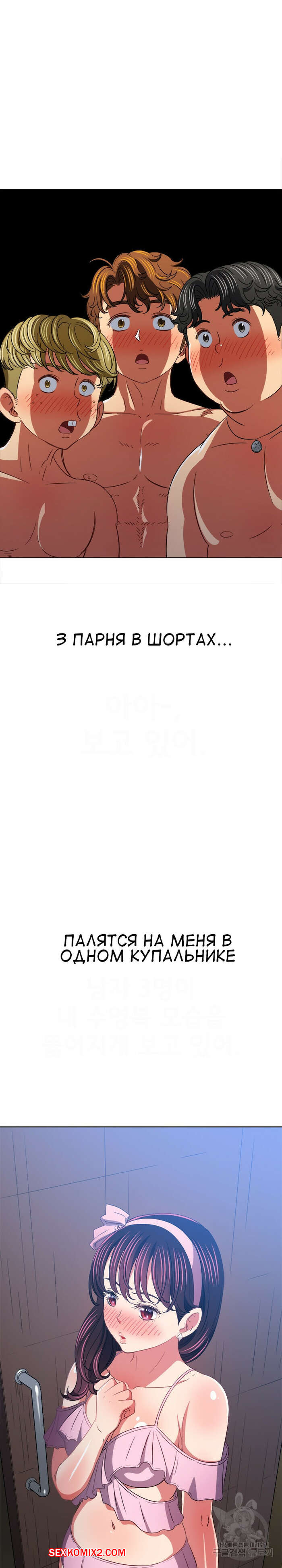 Порно комикс Изгой из старшей школы. Части 148. My High School Bully Горячая сексуальная брюнетка в купальнике встретила трех парней и ей показалось, что они раздевают ее взглядом. Девушка представила как они ее раздели и выебали ее во все дырочки.
