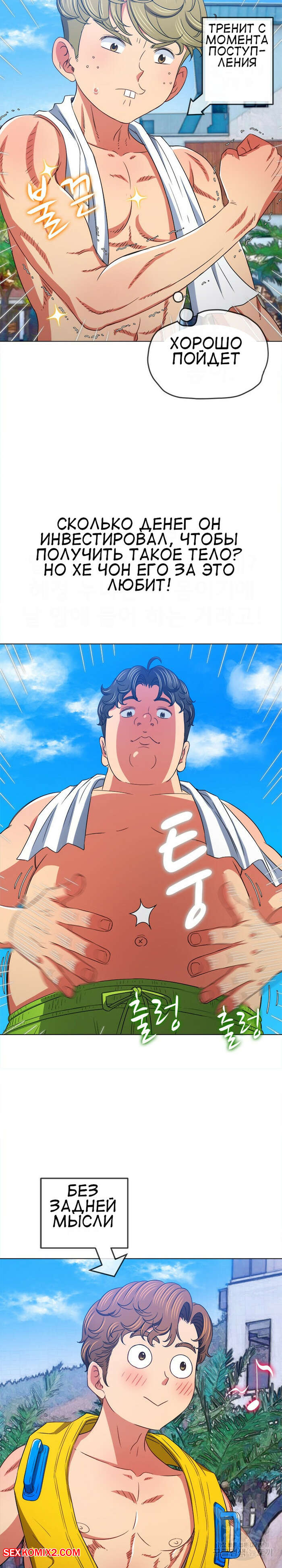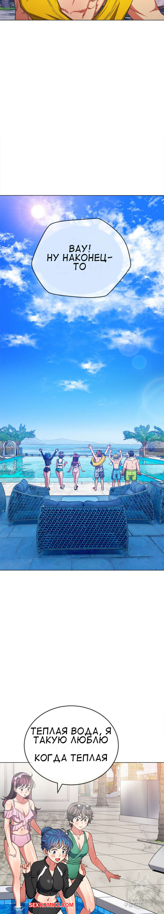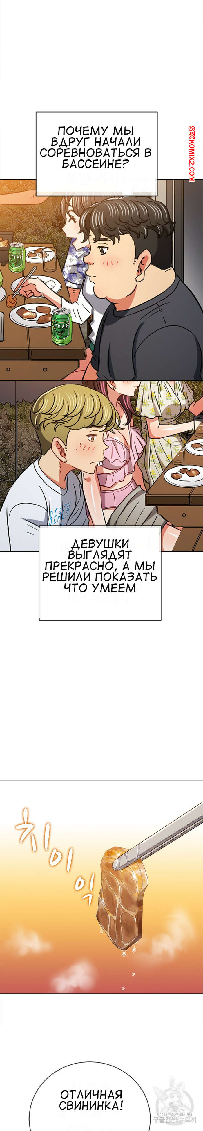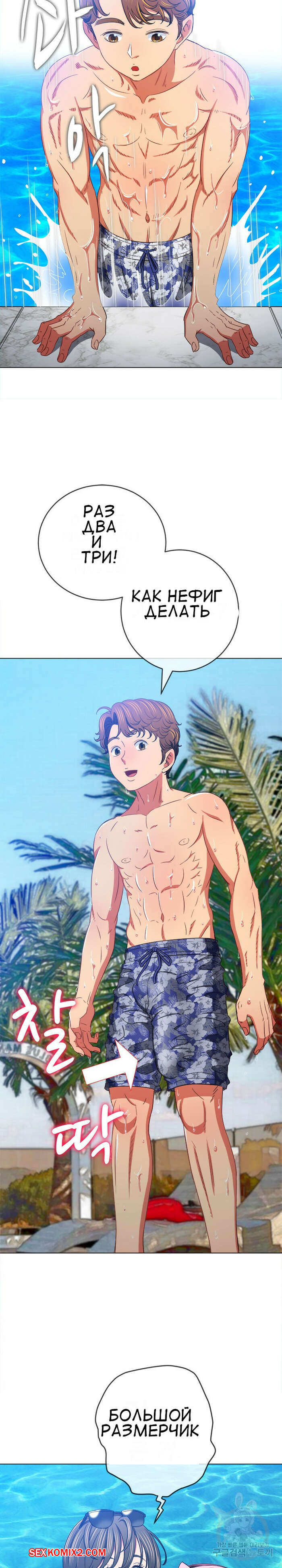 Порно комикс Изгой из старшей школы. Части 148. My High School Bully Горячая сексуальная брюнетка в купальнике встретила трех парней и ей показалось, что они раздевают ее взглядом. Девушка представила как они ее раздели и выебали ее во все дырочки.