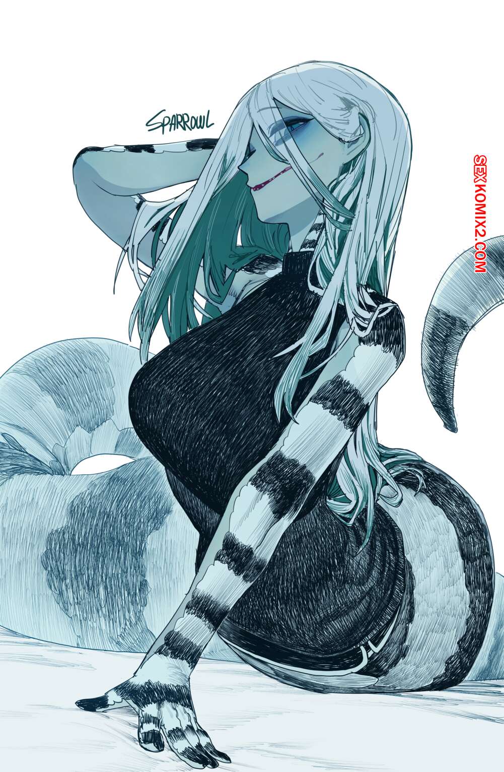 Порно комикс Спокойной ночи. Good night. Sparrowl Сексуальная блондинка монстр была очень возбуждена и решила повеселиться со своим дружком. Она разделась и отсосала большой хуй парня, после чего дала ему себя выебать.