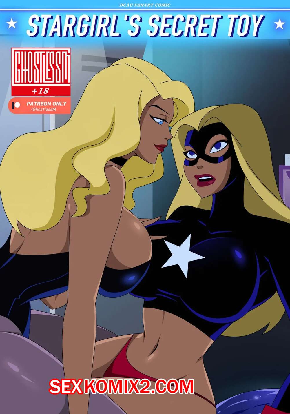 Порно комикс Лига справедливости. Секретная игрушка Старгерл. Ghostlessm Две горячие блондинки были очень возбуждены и решили повеселиться. Они разделись и стали ласкать друг дружку, после чего занялись страстной лесбийской еблей, используя большой дилдо.