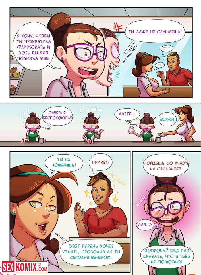 Порно комикс Кружка Любви. Ночь Свиданий. Две подруги привели парней и разошлись по разным комнатам, чтобы заняться сексом. Но один из них сбежал, когда увидел член своей новой знакомой.