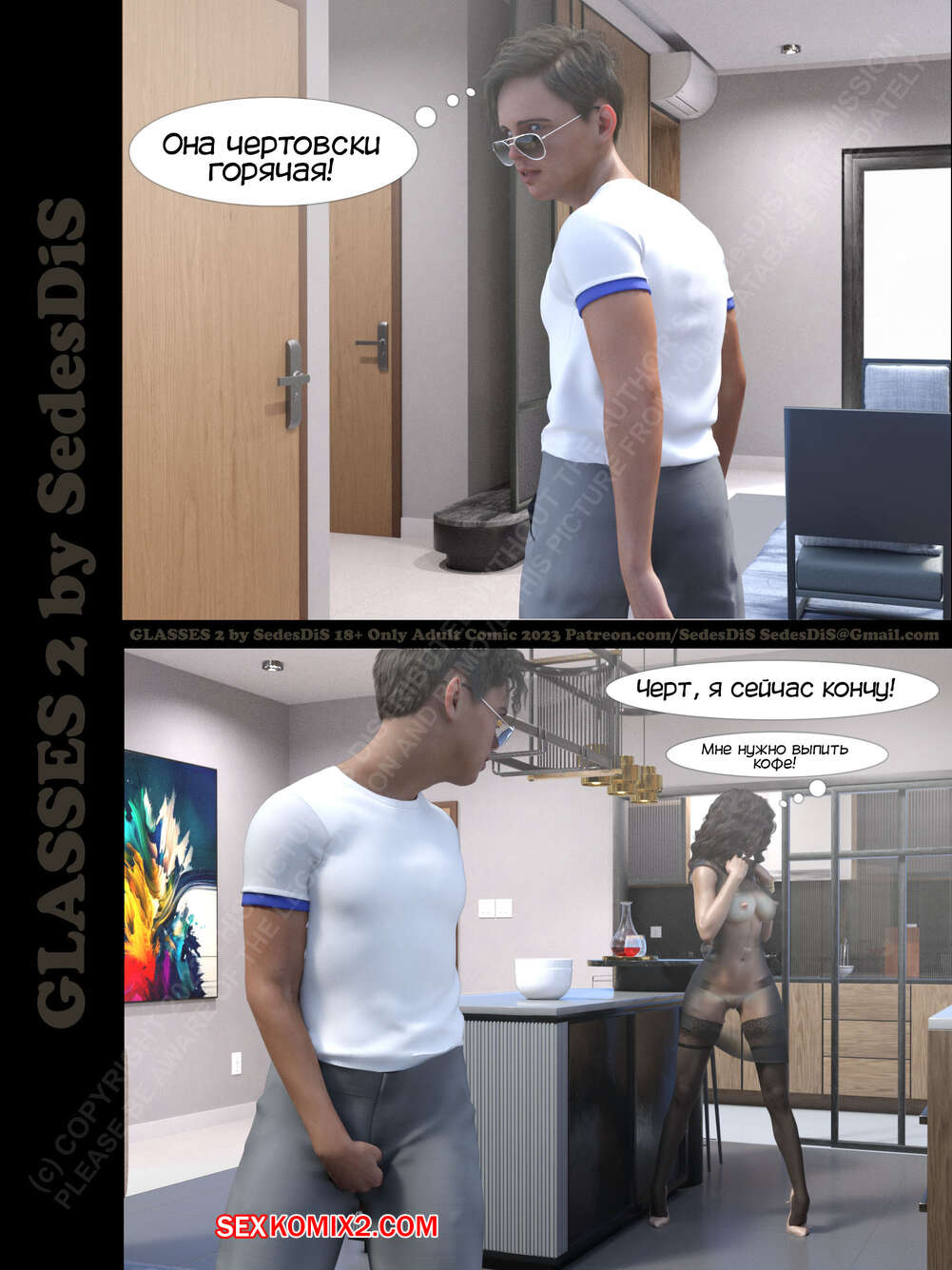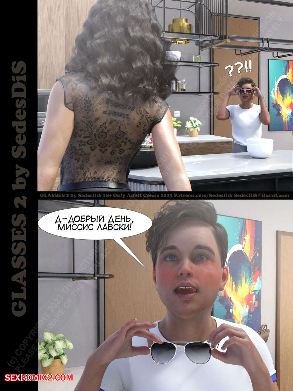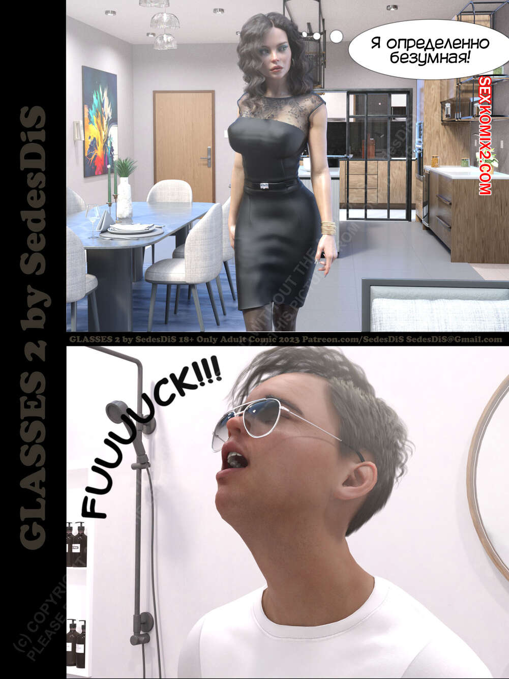 Порно комикс Очки. Часть 2. Glasses. SedesDiS Горячая милфа пришла домой и застала друга своего сына в очках, которые показывают человека голым. Красотка стала дразнить молодого парня, после чего уединилась с ним, чтобы потрахаться.