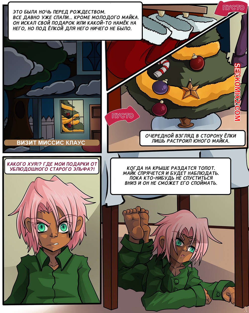 Порно комикс Визит миссис Клаус. A Visit From Mrs Claus. Nearphotison. Сексуальная блондинка милфа принесла подарки на Рождество двум молодым парням. Они раздели красотку и дали ей отсосать свои большие хуи, после чего выебали ее во все дырочки.