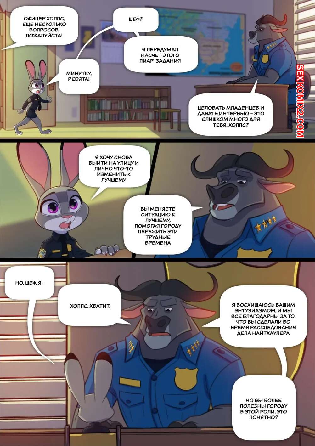 Порно комикс Зверополис. Боссы с преимуществами. Bosses With Benefits. Siroc Горячая красотка кролик пришла в офис к своему боссу, требуя повышения. Он согласен удовлетворить запрос девушки, но она сперва должна удовлетворить его сексуальные потребности.