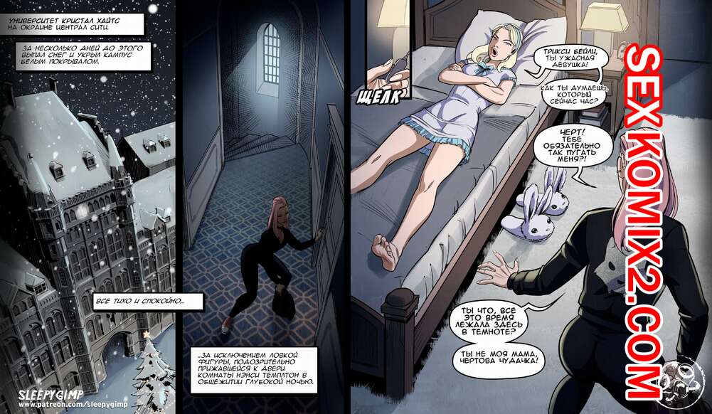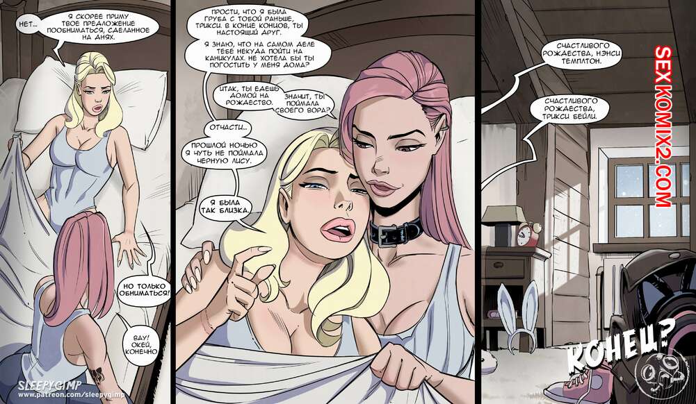 Порно комикс Нэнси Темплтон и вор в ночи. Nancy Templeton Like a Thief in the Night. Sleepygimp Сексуальная воровка Нэнси застала свою сексуальную подругу блондинку голой и связанной. Она надела на себя страпон и хорошенько выебала задницу блондинки.
