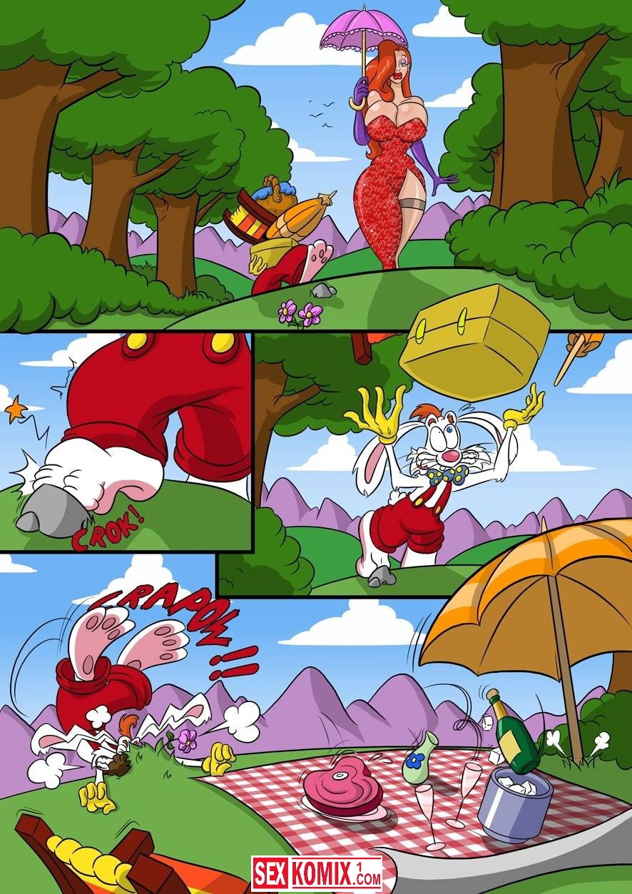 Читайте порно комикс «Джессика Рэббит в первородном грехе». В этом комиксе для взрослых вы прочитаете о том как сексуальная красотка пошла на пикник со своим мужем. И пока супруг бугал за цветами, на неё напал развратный змей и начал трахать сиськастую девушку во все дыры, в рот и задницу.
