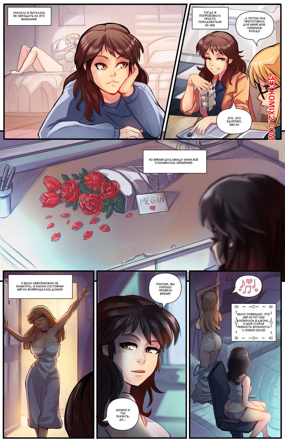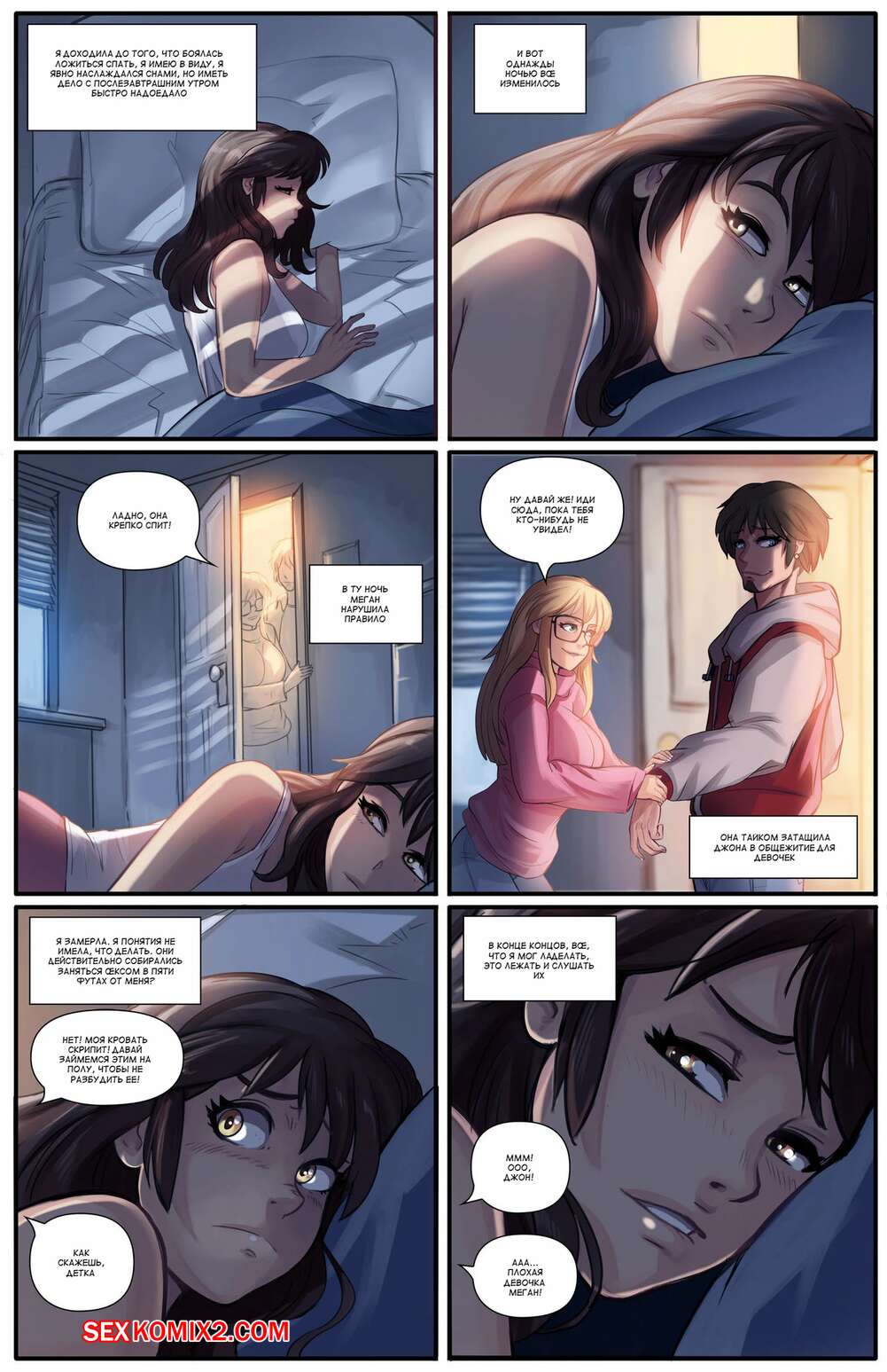 Порно комикс Невидимка. Часть 1. The Invisible Girl. Shrink Fan Comics. Горячая сексуальная брюнетка услышала ночью звуки секса ее подруги с парнем. Девушка так сильно возбудилась, поэтому она стала ласкать свою пизденку, представляя, как сама занимается сексом.