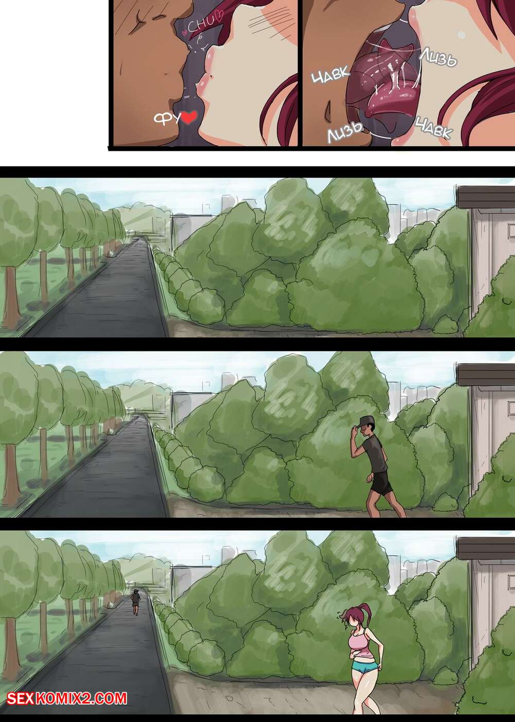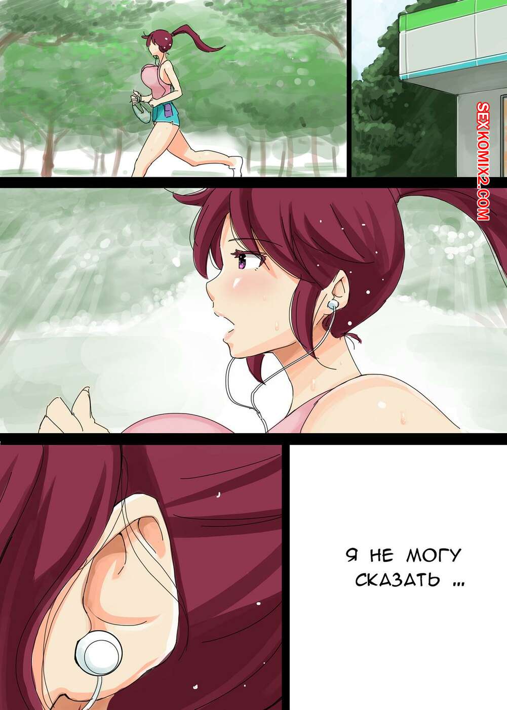 Порно комикс Я никому не могу сказать. Канако. Ao Madousi Горячая красотка милфа отправилась на пробежку со своим дружком. Они решили повеселиться, поэтому красотка раздвинула ножки и дала парню себя хорошенько выебать.