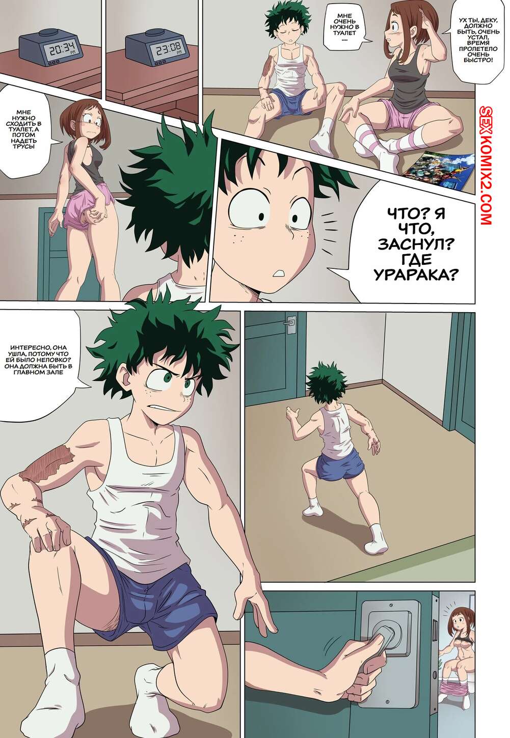 Порно комикс Академия. Приятный подарок. A Nice Gift Деку пришел в комнату к своей подруге, чтобы сделать ей подарок. Он раздел девушку и стал ласкать ее пизденку, после чего хорошенько выебал ее своим большим членом.