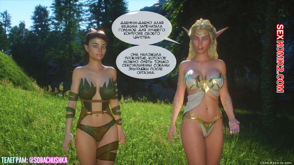 Порно комикс Мир оргазма. Пробуждение голема. Часть 1. Lord Kvento Две горячие эльфийки были очень возбуждены и решили повеселиться. Красотки стали страстно целоваться и ласкать друг дружку, после чего занялись лесбийской еблей.