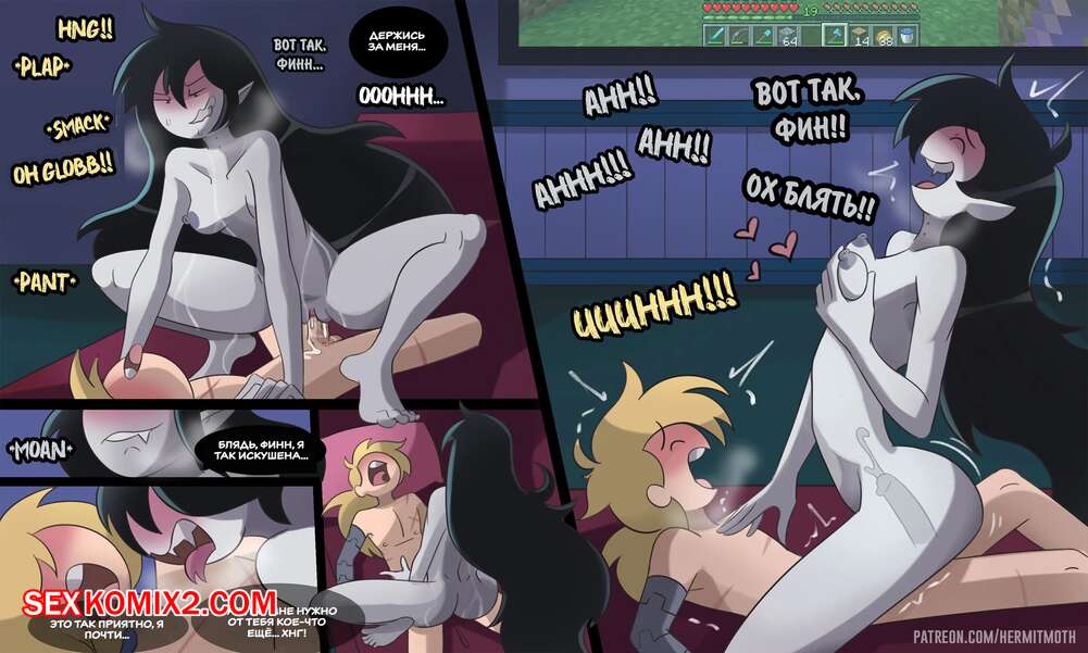 Порно комикс Время приключений. Марселин и Финн. Часть 3. Marceline x Finn. Hermit Moth. Горячая брюнетка была очень возбуждена и хотела трахаться. Она разделась перед своим дружком и возбудила его шикарным телом, после чего дала ему выебать свою пизденку.