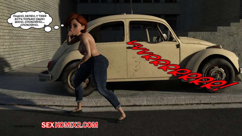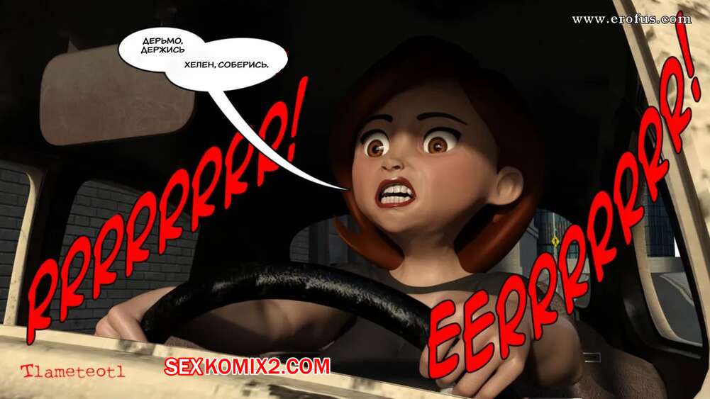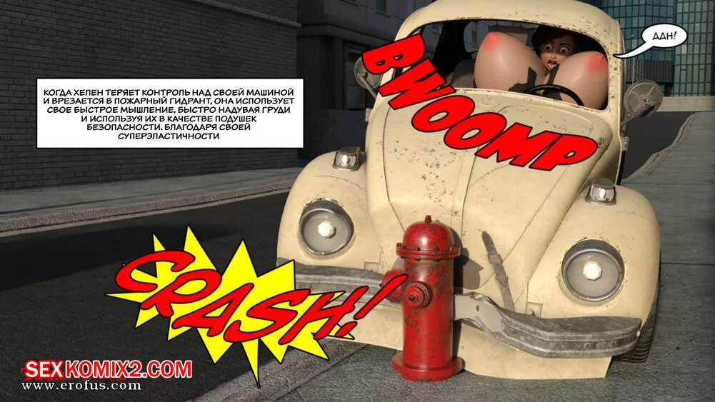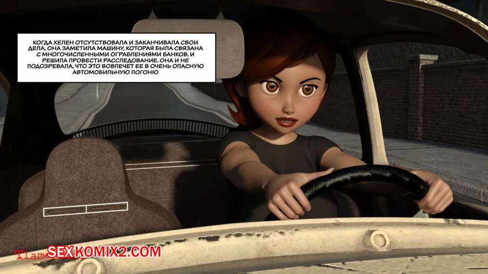 Порно комикс Суперсемейка. Большая погоня Хелен. Helens Big Chase. Tlameteotl Сексуальную брюнетку Хелен на машине преследовал парень. Красокта пыталась от него оторваться, но в итоге врезалась в столб. К счастью, у нее сработали ее подушки безопасности в виде сисек и задницы милфы.