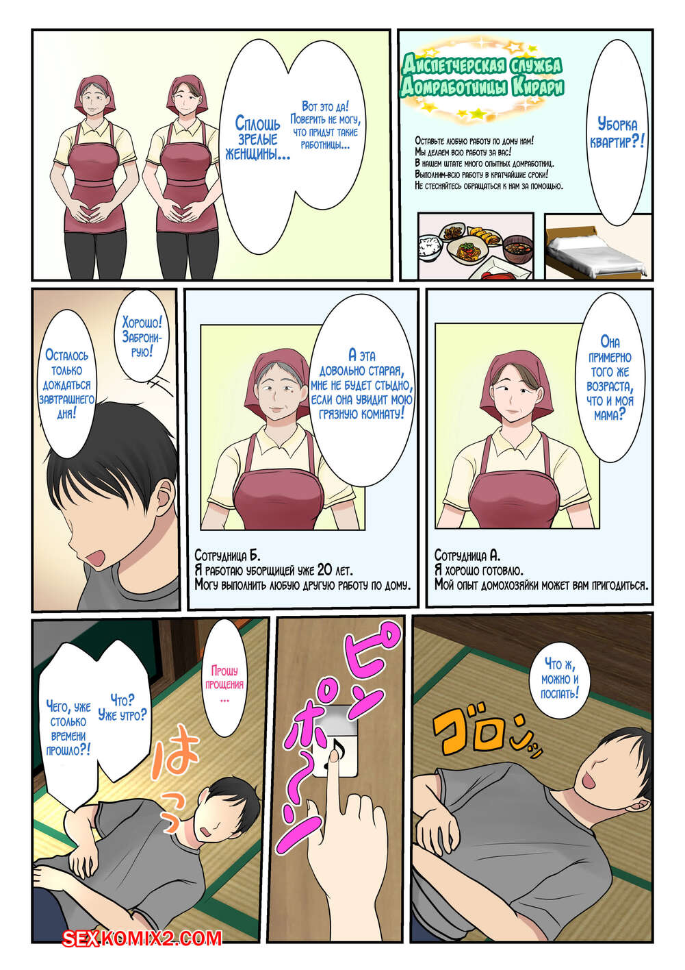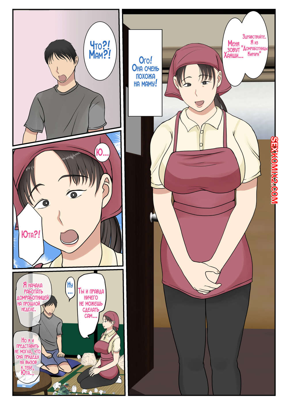 Порно комикс Я вызвал домработницу, а пришла моя мама. Benii Kenkyuujo Молодой парень вызвал к себе домработницу, но ею оказалась его мама. Во время уборки, парень возбудился, глядя на тело мамочки, поэтому он раздел ее и выебал пизденку милфы.