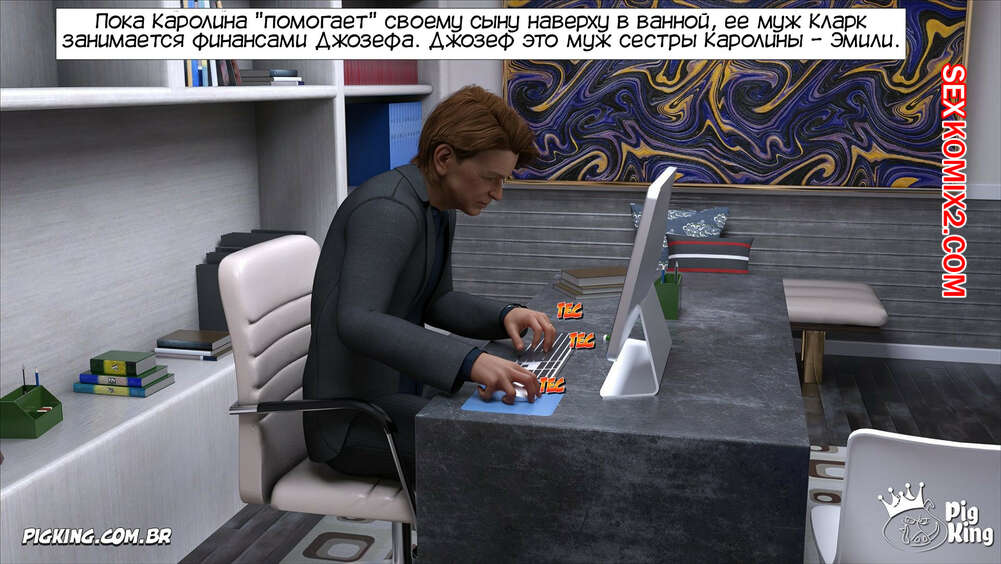 Порно комикс Каролина. Часть 4. Caroline. CrazyDad3D Горячая милфа Каролина продолжает наслаждаться огромным членом своего сына в ванной, пока ее муж занят рабочими делами в своем кабинете. Красотка с удовольствием скачет на члене Брэндона и готова трахаться с ним всегда, когда он захочет.