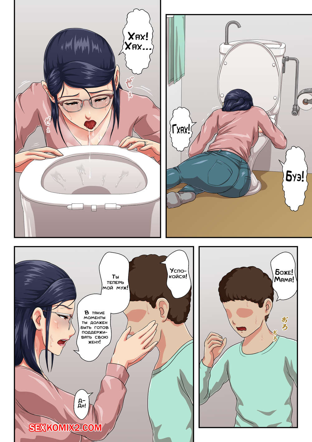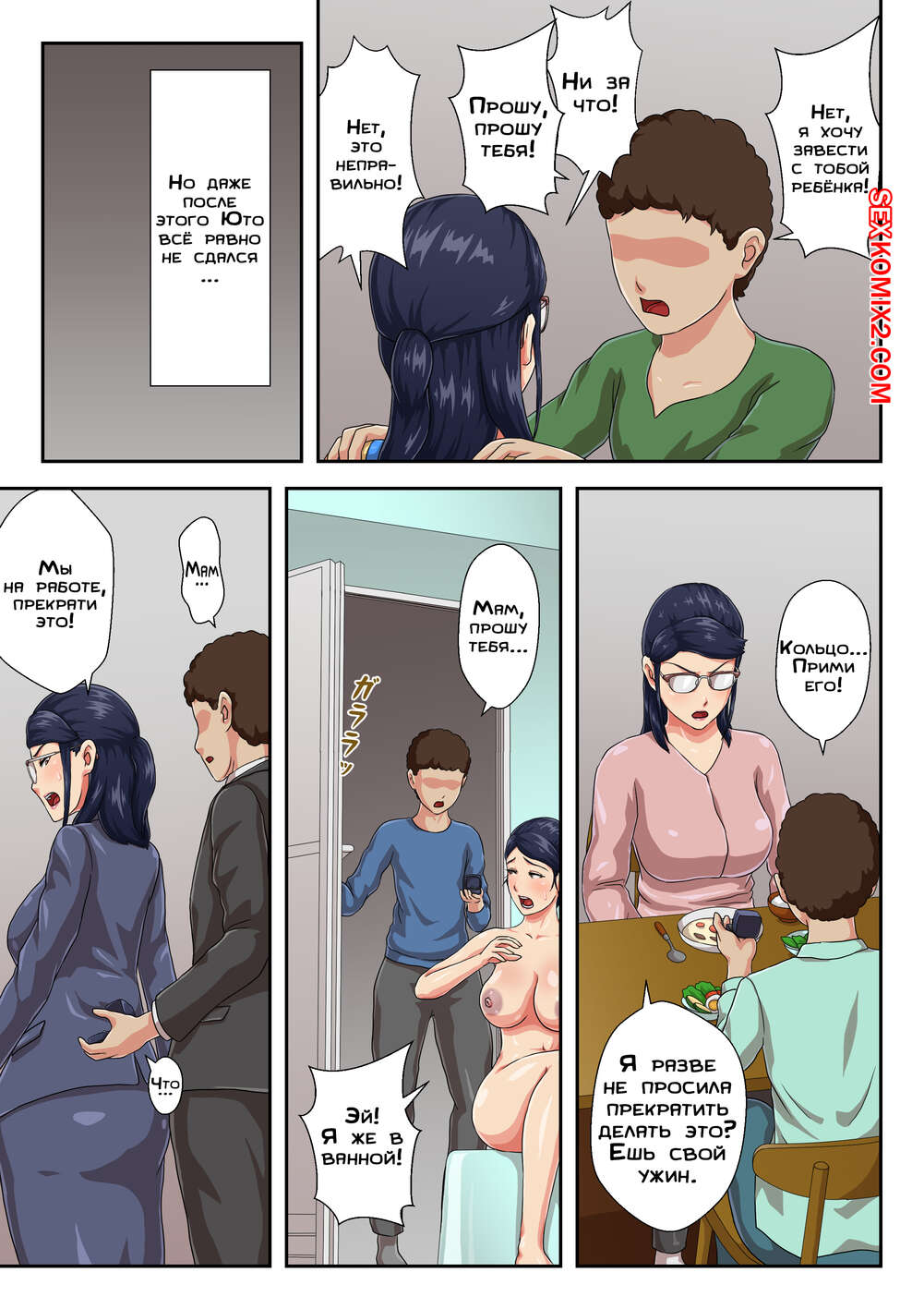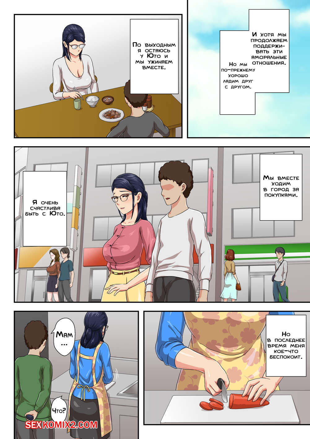 Порно комикс Моя начальница моя мама, с которой меня разлучили. Часть 2. Kumo No Ito Сисястая брюнетка милфа была очень возбуждена и решила повеселиться со своим сыном. Красотка разделась и стала сосать большой хуй парня, после чего дала ему себя хорошенько выебать.