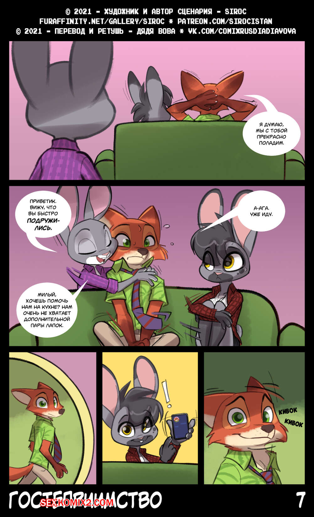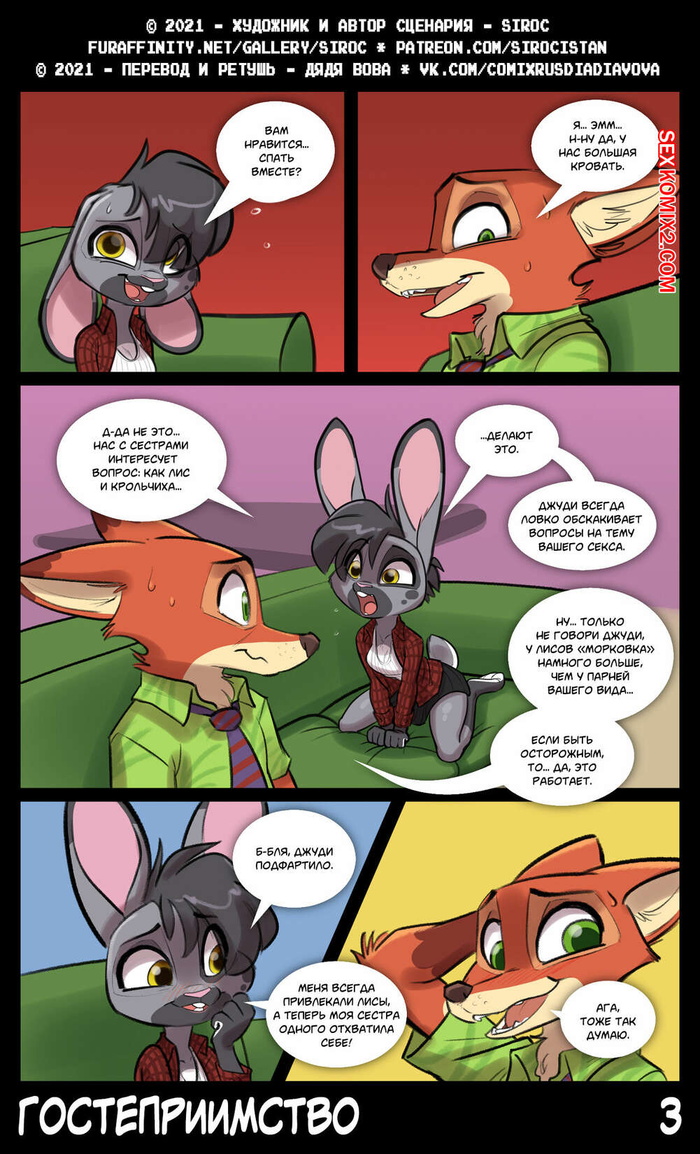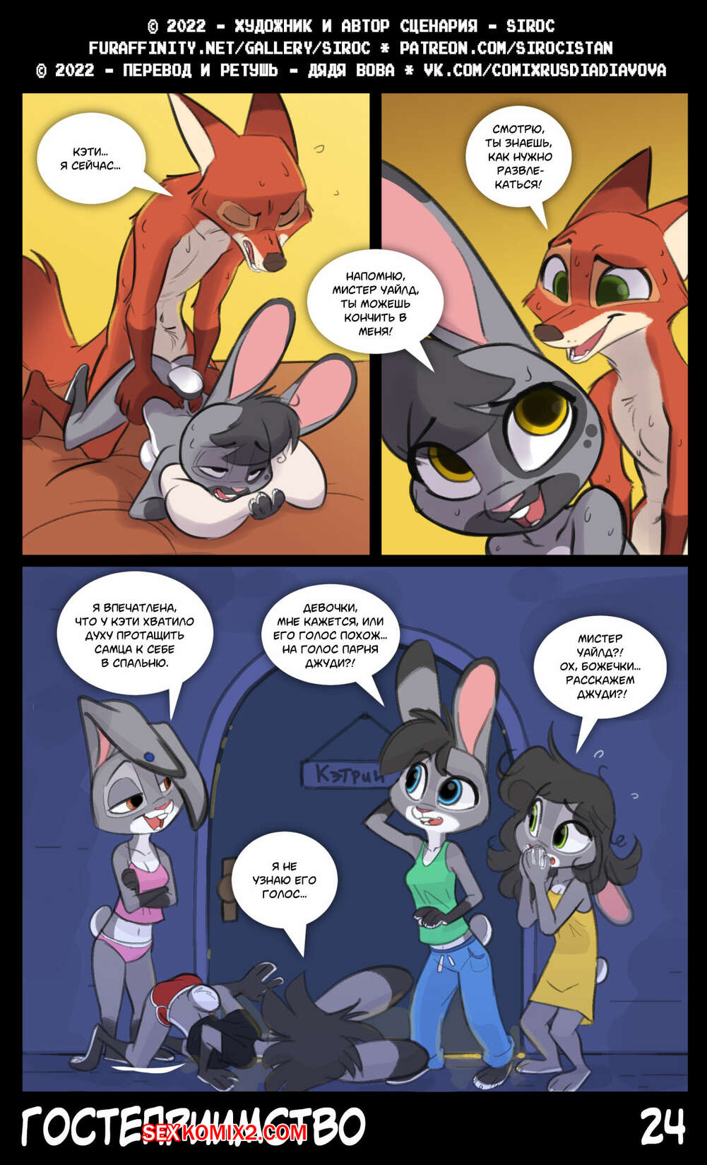 Порно комикс Зверополис. Гостеприимство. Siroc Девушка приехала в гости к своей сестре и ее мужу. Красотка положила глаз на хозяина дома и решила с ним повеселиться. Оставшись наедине, девушка отсосала большой хуй парня, после чего дала ему себя выебать.