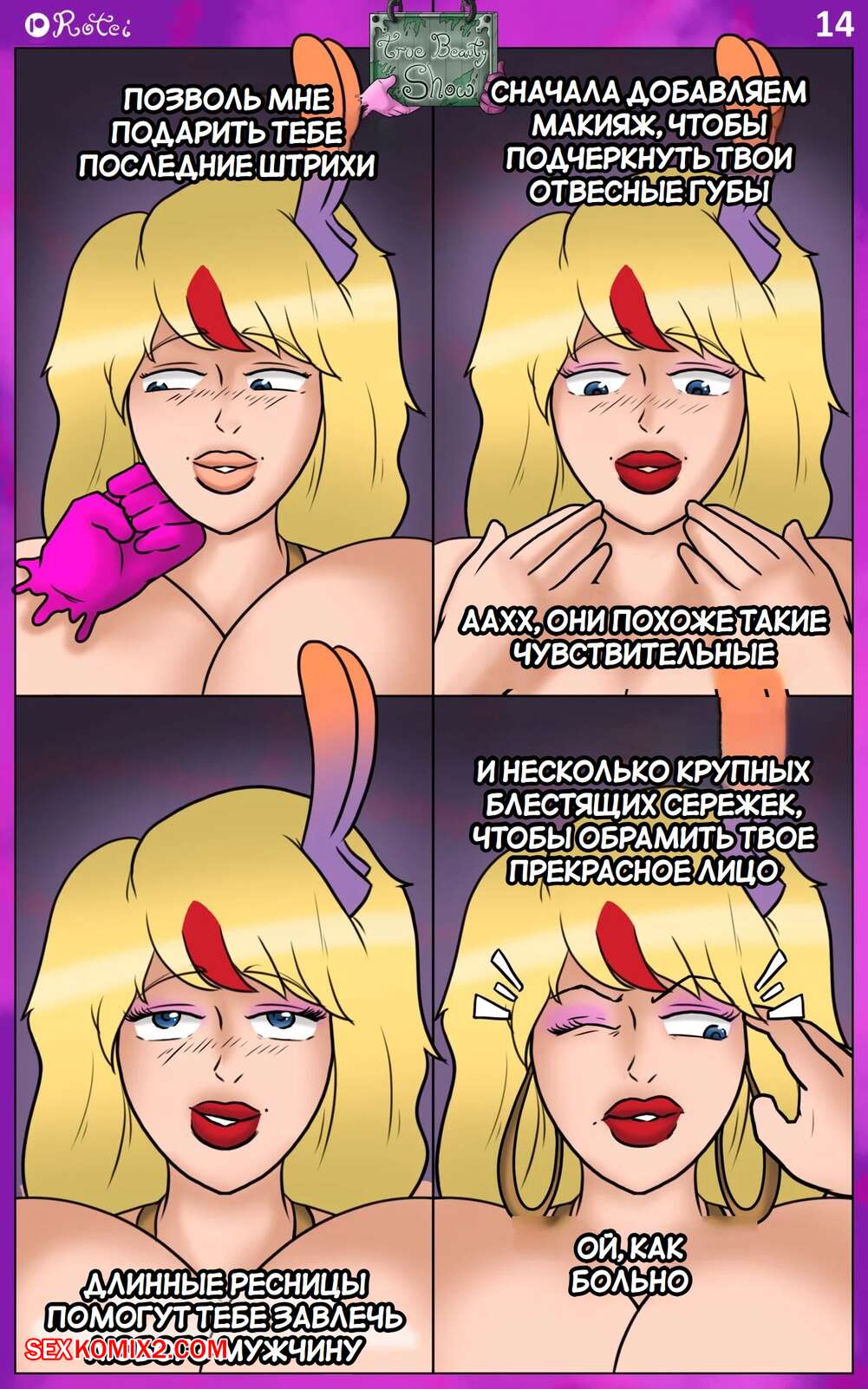 Порно комикс Настоящее шоу красоты. True Beauty Show. Rotei. Горячая красотка попала в заброшенный дом, где все девушки вокруг были голыми. Красотки ходили по сцене как в настоящем шоу красоты, после чего их ждал парень, чтобы выебать девушек.