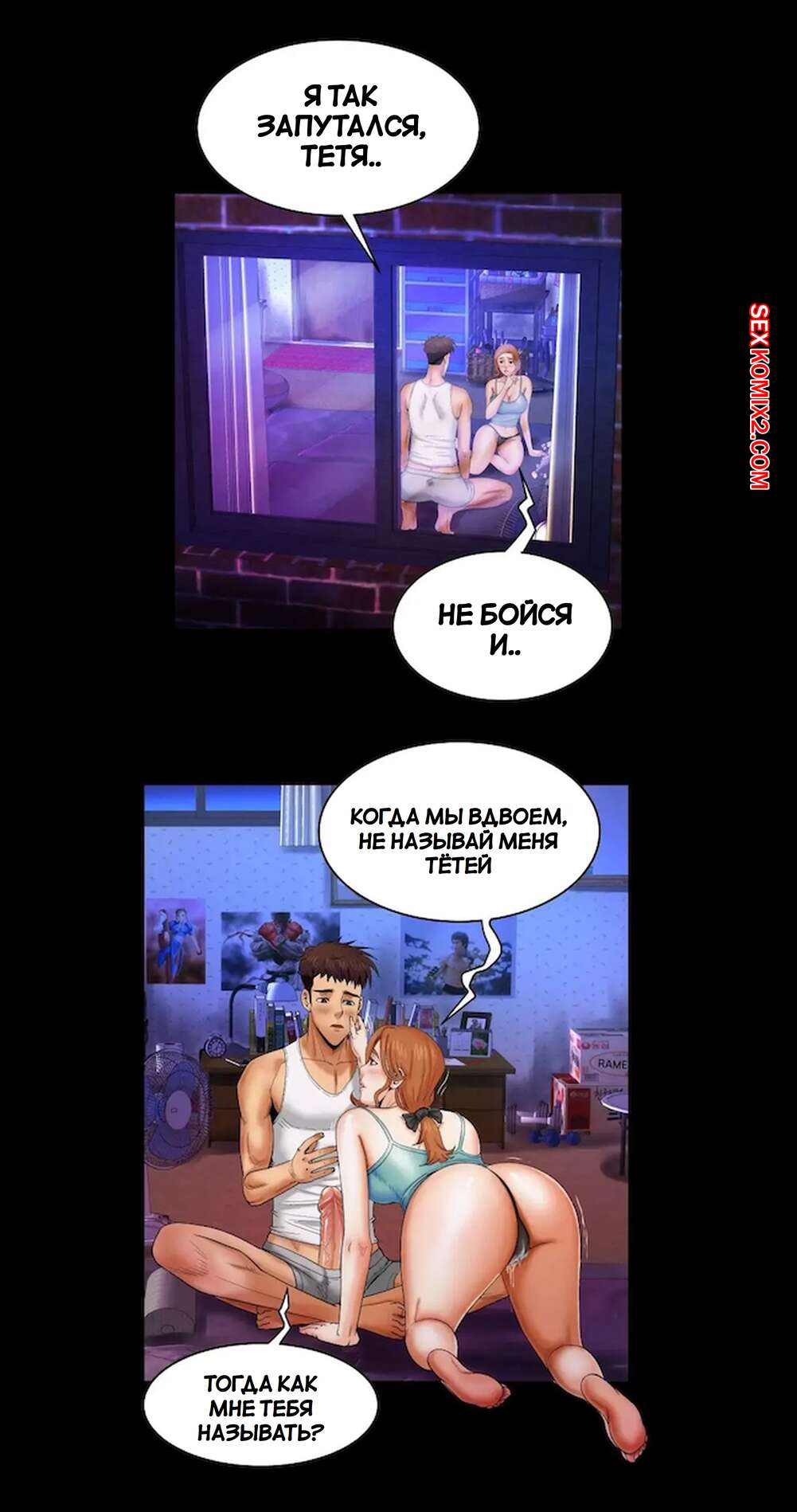 Порно комикс Моя тетя. Без цензуры. Часть 13. My Aunt. Toomics Молодой парень лег спать со своей горячей тетей и они решили повеселиться. Красотка стала страстно целовать своего племянника, желая заняться с ним сексом, но им вновь помешали.
