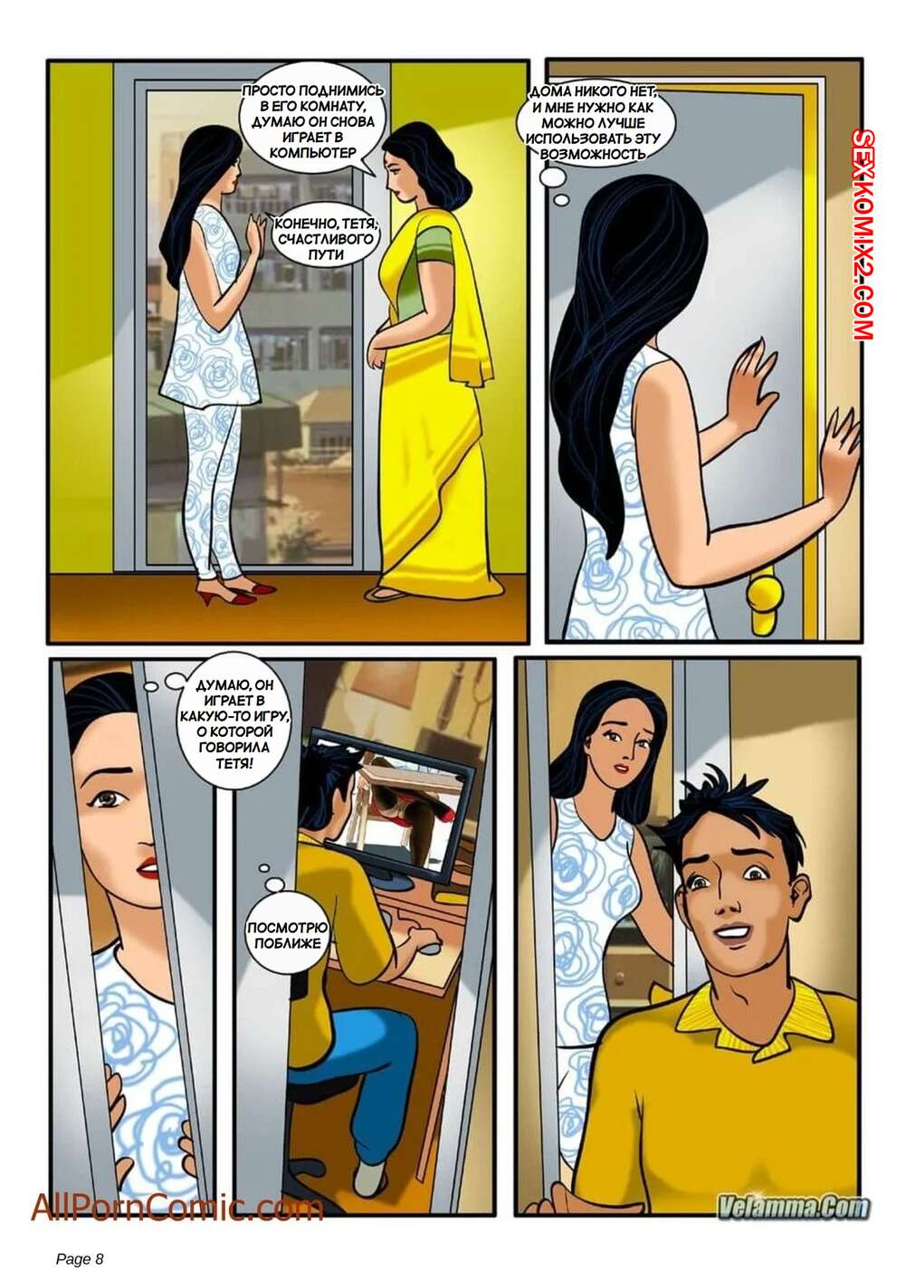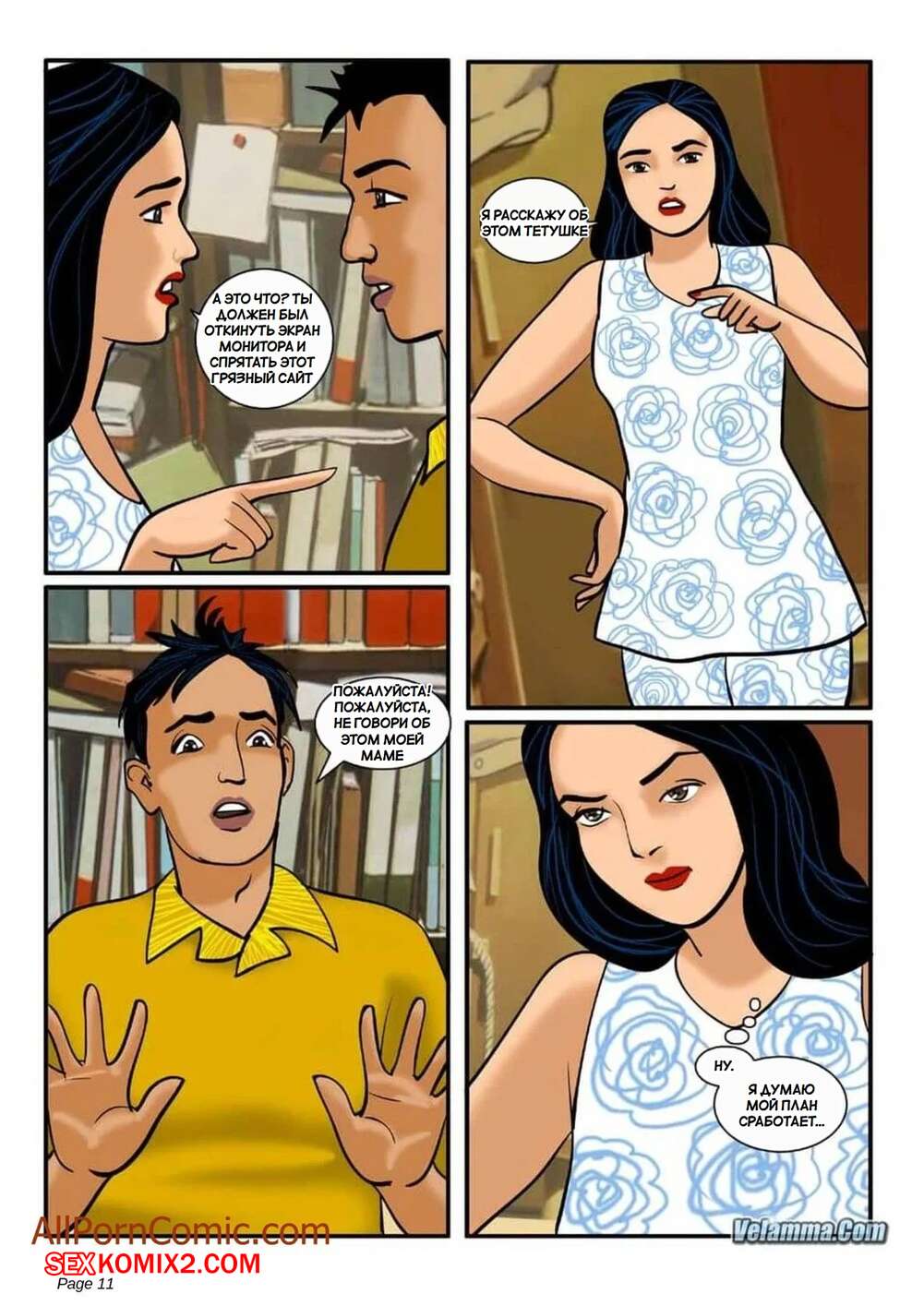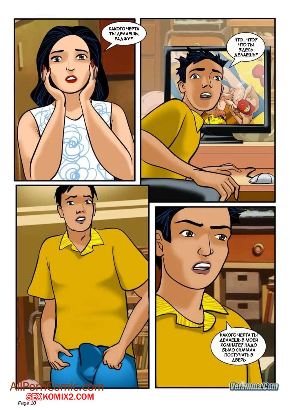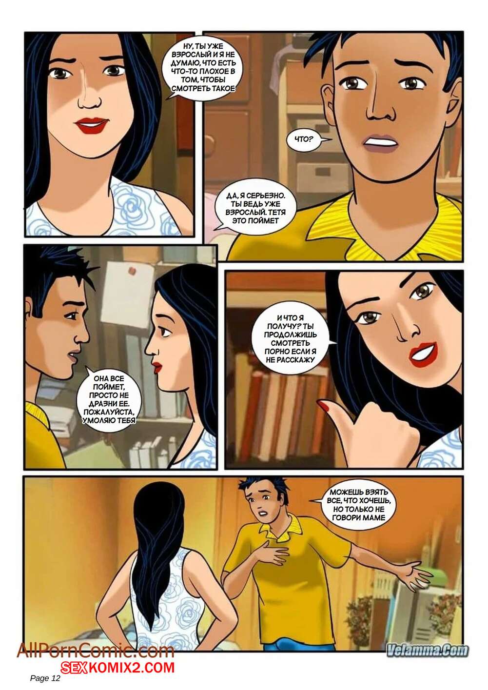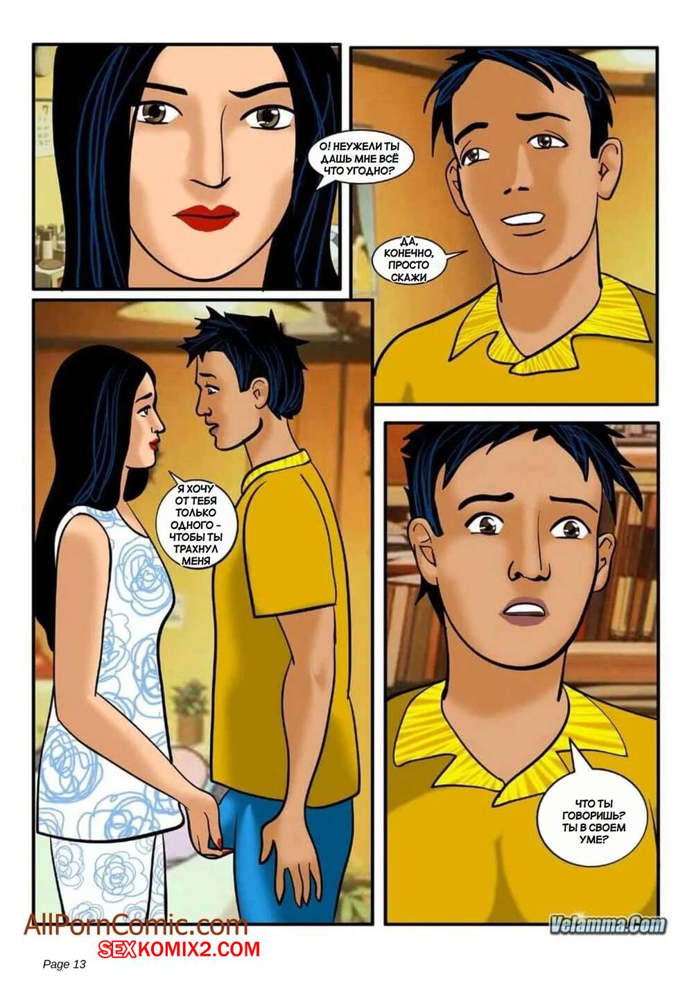 Порно комикс Веламма. Часть 7. Velamma. Velamma Сисястая брюнетка милфа была очень возбуждена и решила повеселиться с молодым парнем. Она разделась и отсосала хуй паренька, после чего дала ему выебать свою пизденку.