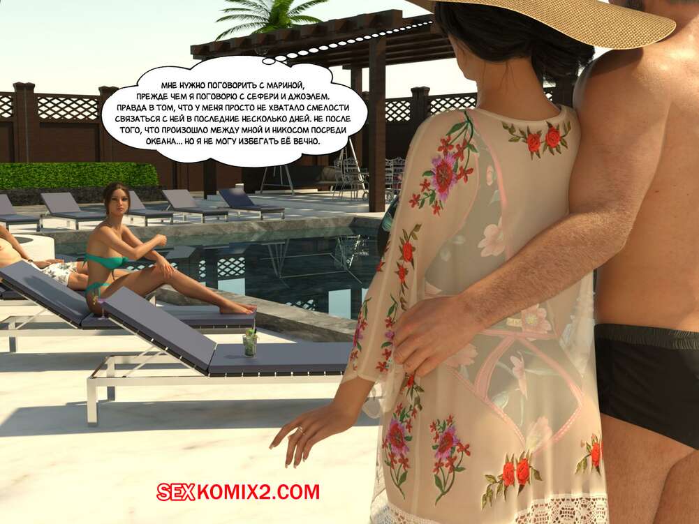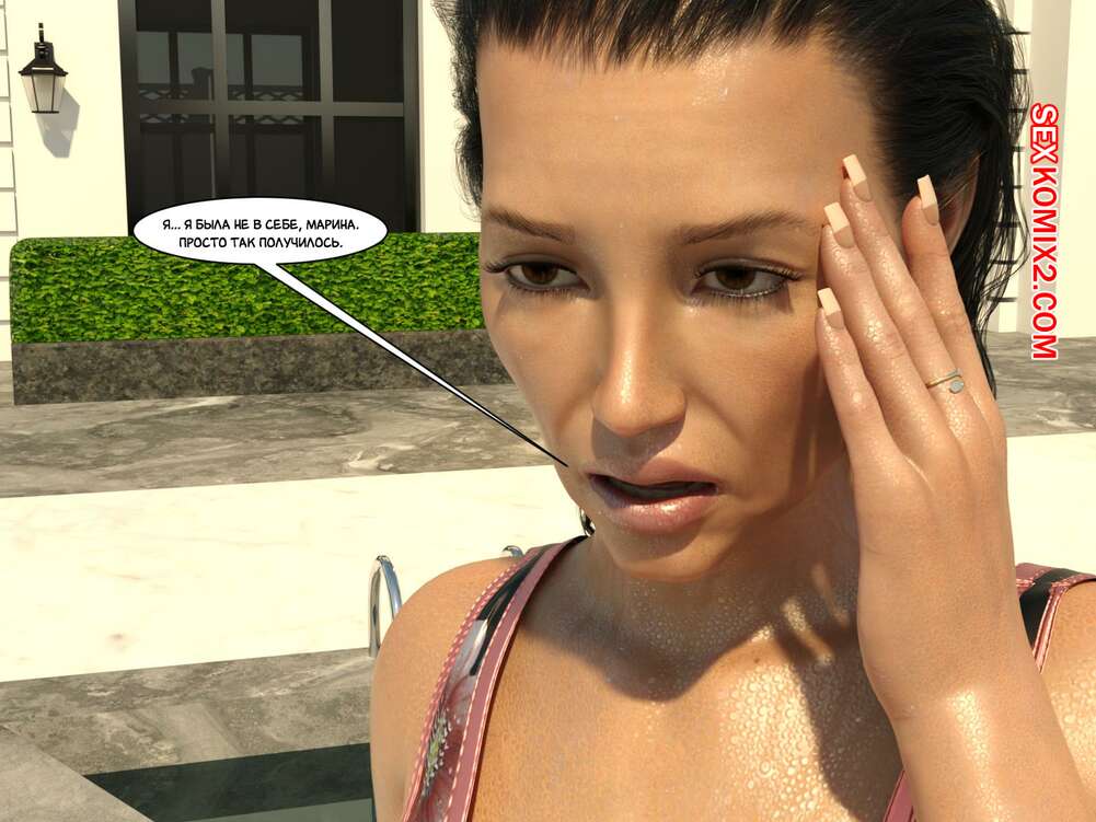 Порно комикс Зеркало Афродиты. Часть 22. Пот, кровь и слёзы. Melissa822 Сисястая брюнетка милфа надела сексуальный купальник и отправилась купаться в бассейне. Там она осталась наедине с молодой девушкой, которая стала задавать милфе откровенные вопросы.