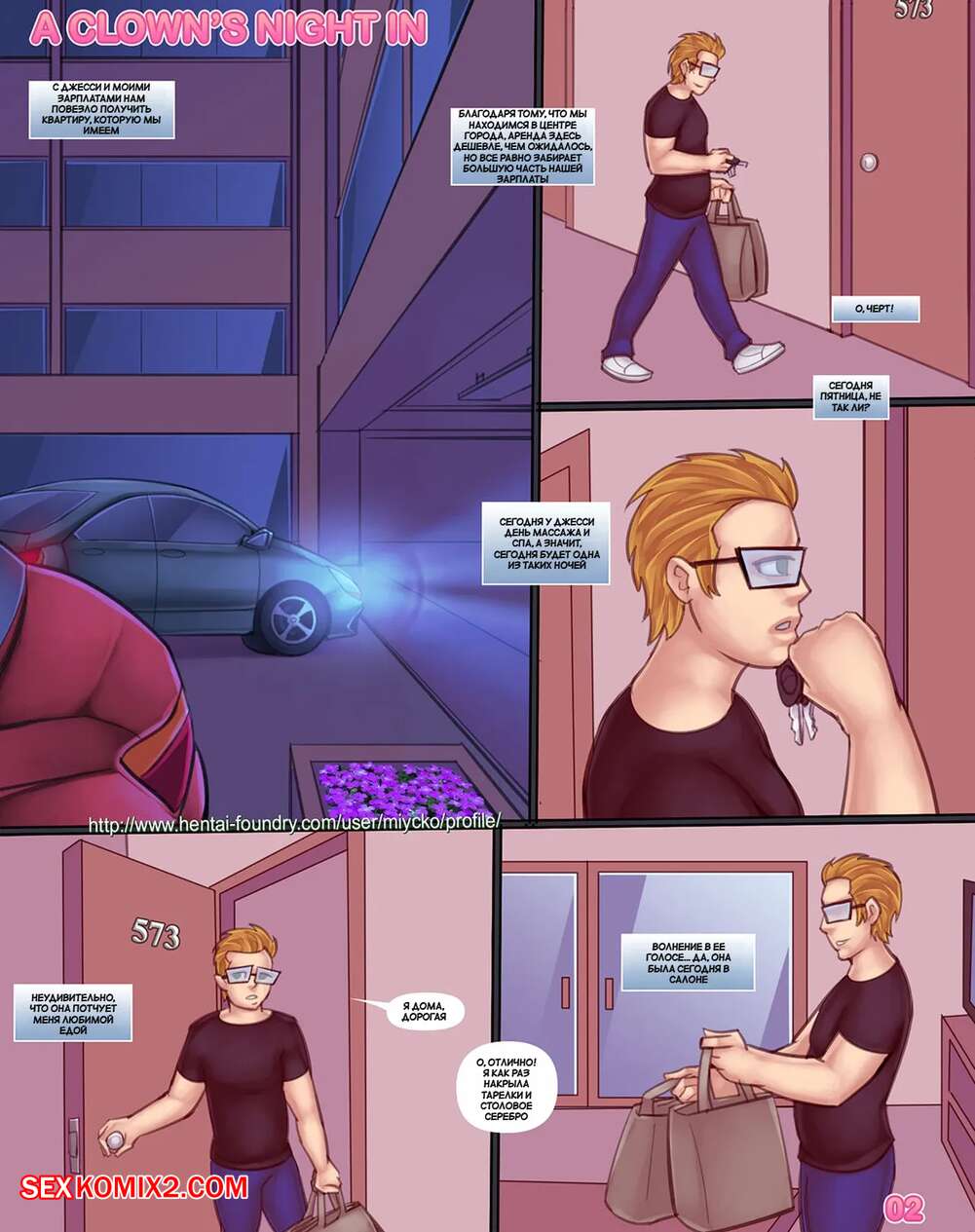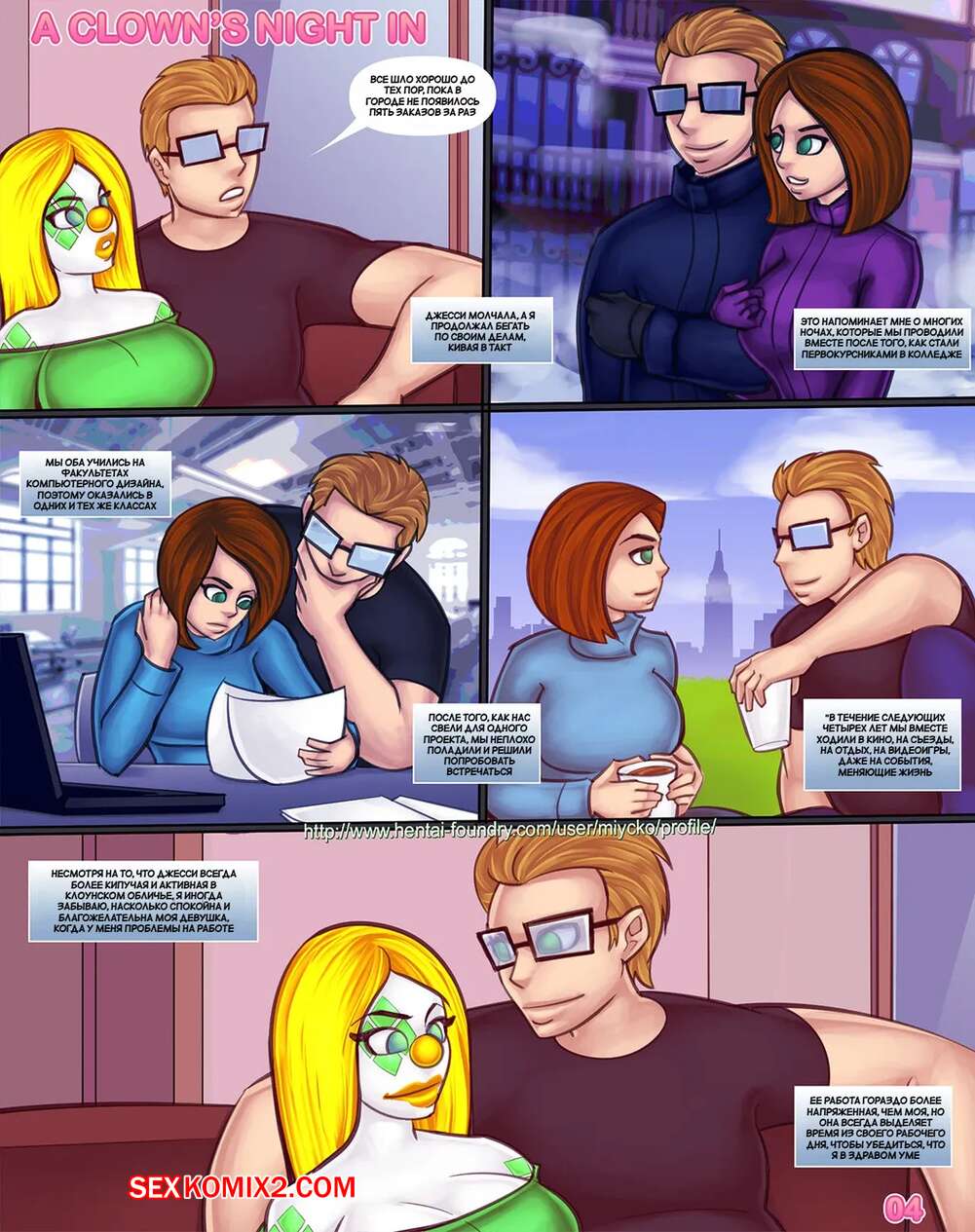 Порно комикс Ночь клоуна. A Clowns Night In. miycko. Горячая блондинка милфа была очень возбуждена и решила повеселиться со своим любимым. Девушка разделась и отсосала большой хуй парня, после чего дала ему выебать свою пизденку.