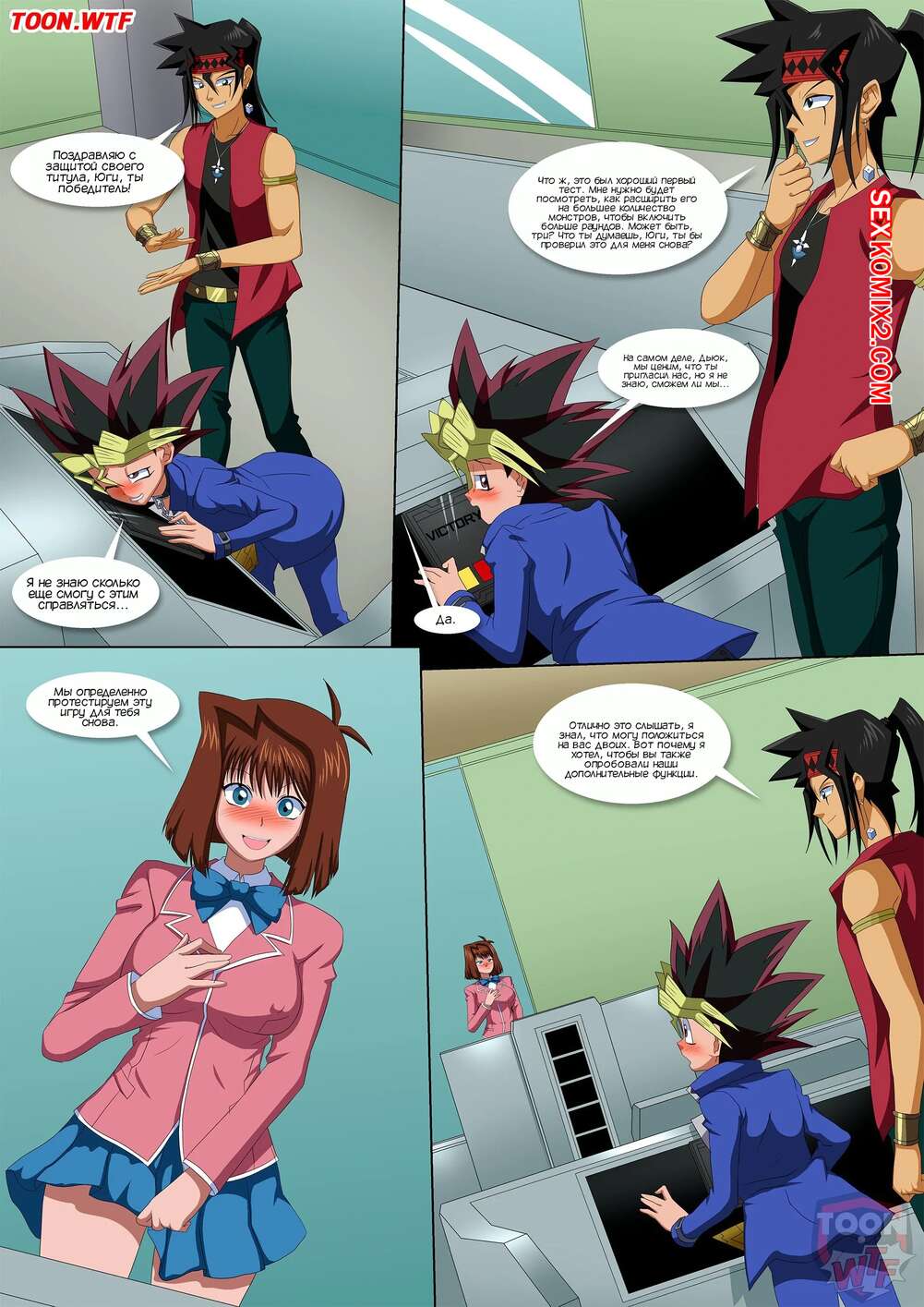 Порно комикс Дуэль сердец. Dueling Hearts. Palcomix Парень с девушкой пришли в лабораторию к своему другу доку, чтобы помочь ему протестировать новую игру. Они заняли свои позиции и приступили к увлекательному тесту.