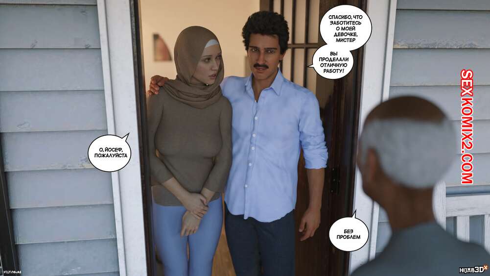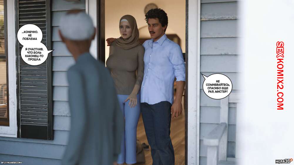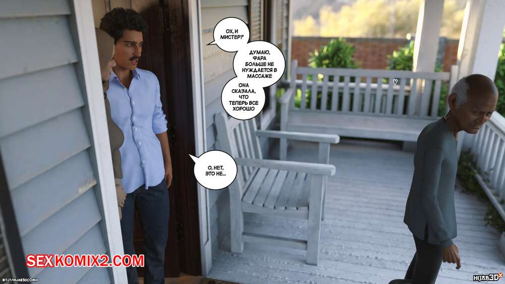 Порно комикс Массажист. Часть 5. The Masseur. LoseKorntrol Муж милфы вернулся домой в очень возбужденном состоянии и хотел заняться сексом со своей любимой. Он стал ласкать большие сиськи девуши, но им помешал старик массажист.