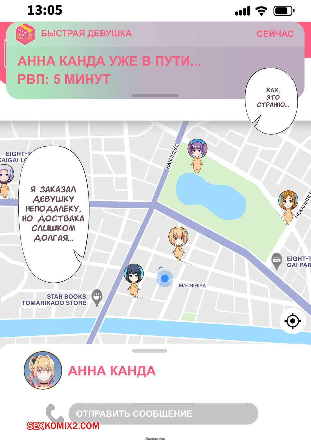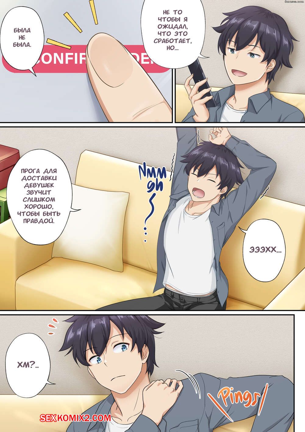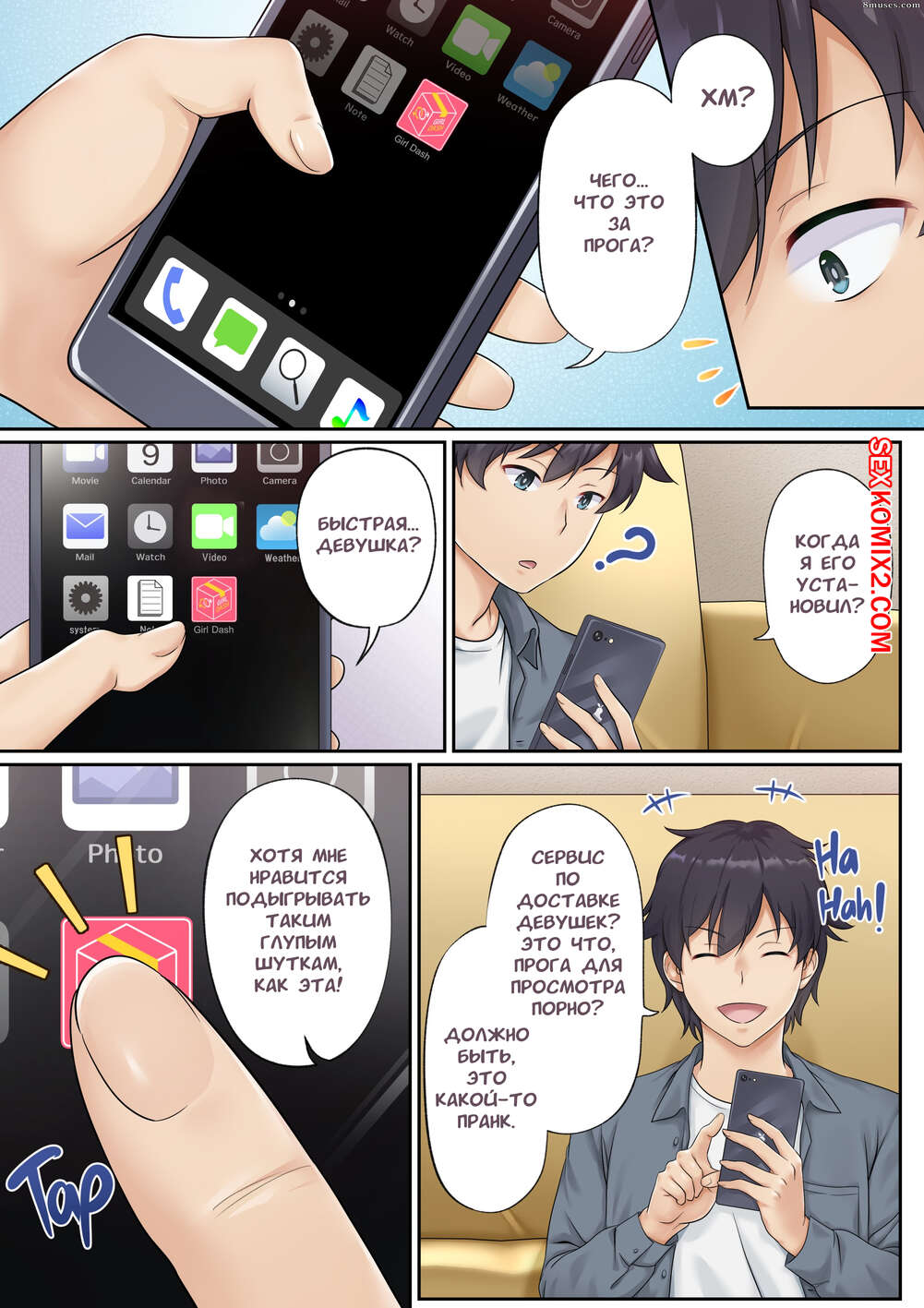 Порно комикс Быстрая девушка. Служба доставки красоток. Tawawa Delivery Юный парень пользуется приложением на своем телефоне для вызова сексуальных девушек. Они приезжают к парню и сосут его большой хуй, после чего дают парню себя выебать.