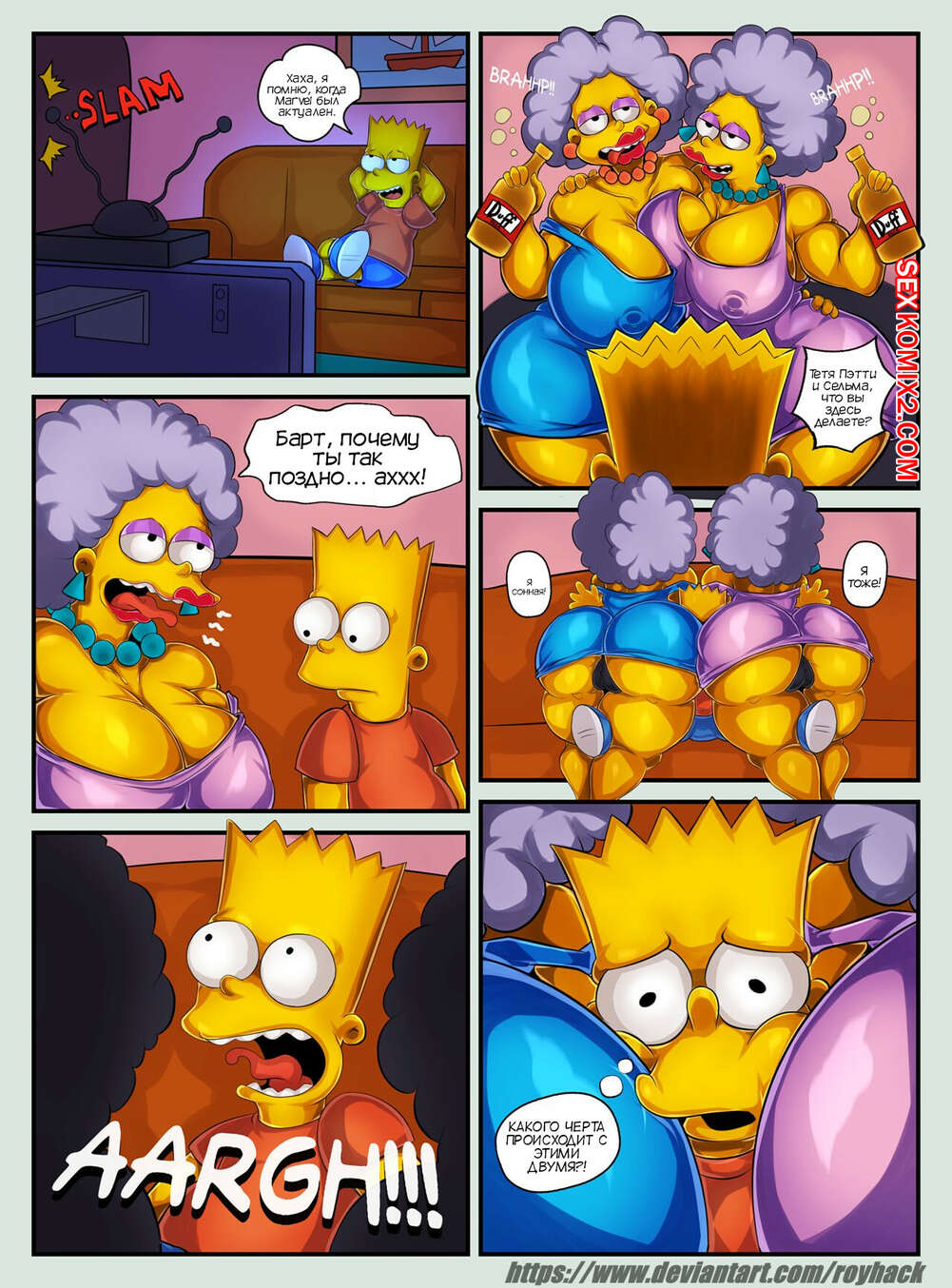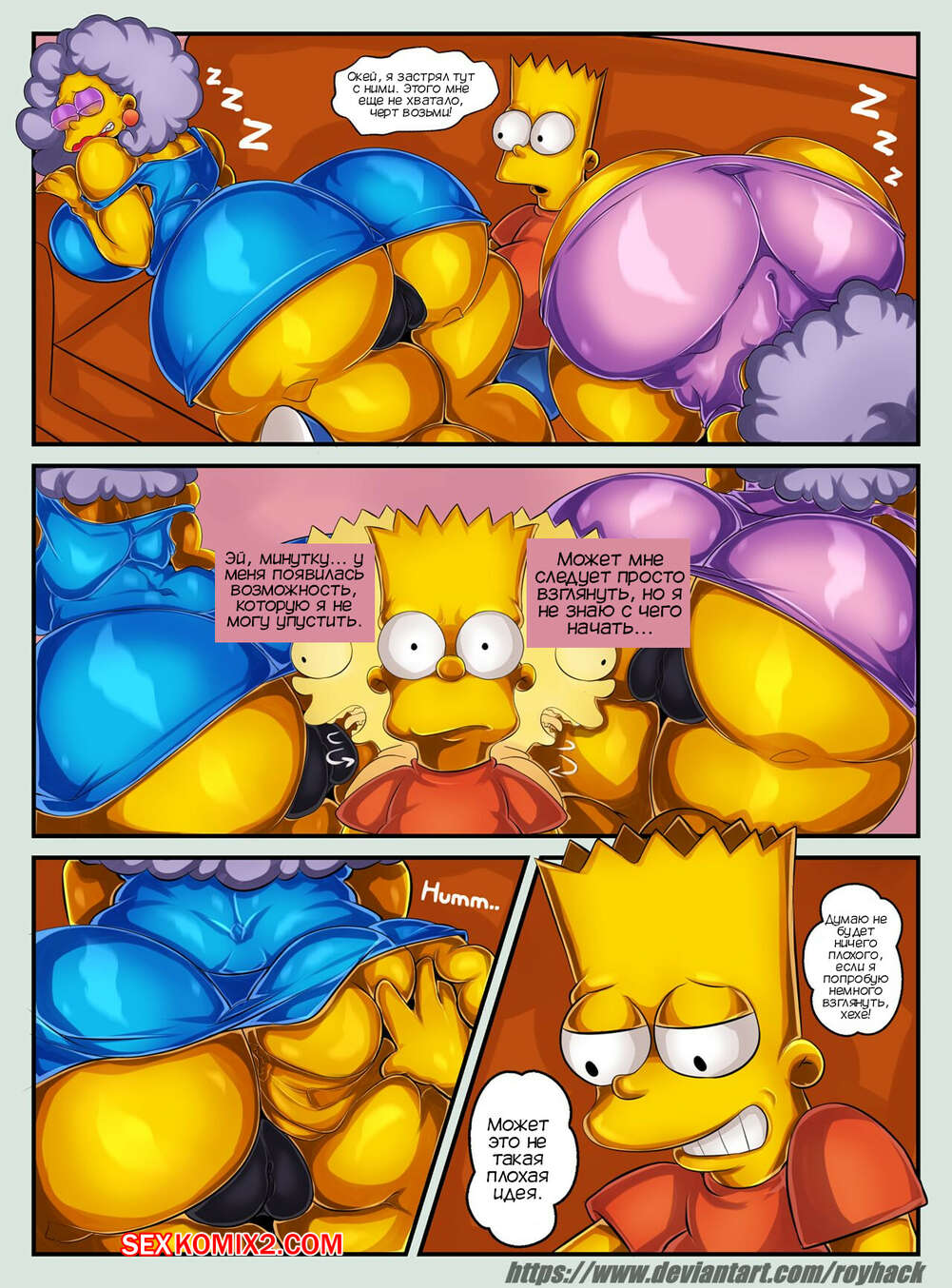 Порно комикс Симпсоны. Два блинчика с знакомым вкусом. Two pancakes with familiar flavor. ROYHACK Пэтти и Сельма вернулись домой пьяными и решила повеселиться с Бартом. Парень застал тетушек голыми в постели, после чего они пригласили его к себе и дали себя выебать.