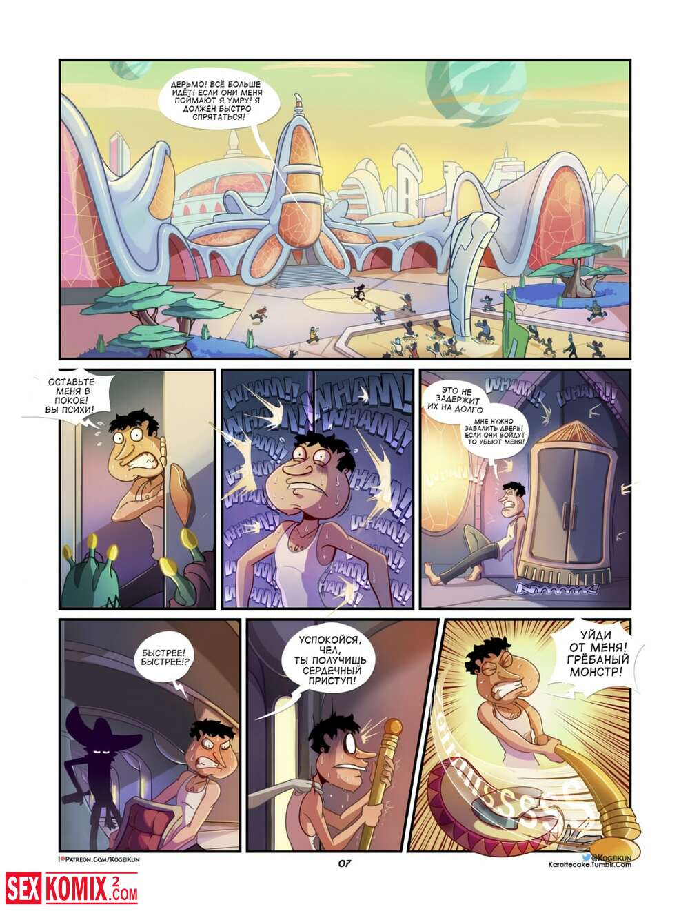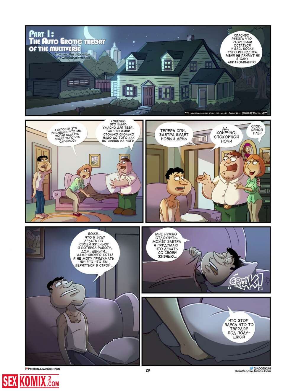 Порно комикс Гриффины vs Рик и Мори. Куагмаер в Мультивселенной. Глен лег спать и почувствовал по подушкой какой-то пульт, это была портальная пушка, которая перенесла его во вселенную Рика и Морти.