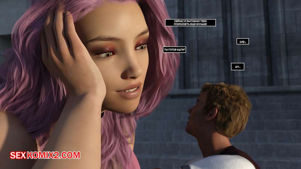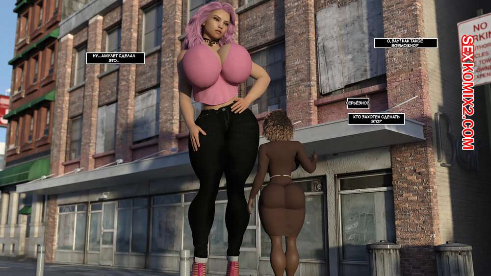 Порно комикс Удвоить размер. Часть 3. Doublesize Красотка достигла огромных размеров и предложила парню отправиться к ней домой и повеселиться. Там парень стал больше, а девушка уменьшилась, после чего она стала ласкать большой член своего дружка.