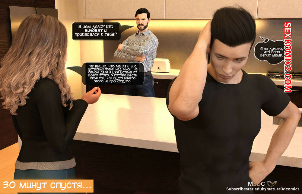 Порно комикс Милфа по соседству. Часть 14. The MILF Next Door. Mature3DComics Майлз отправился в комнату к своей мамке, желая вновь ее выебать. Тем временем в соседнем доме отец Эйса решил поговорить с сыном по душам и узнать все, что происходит.