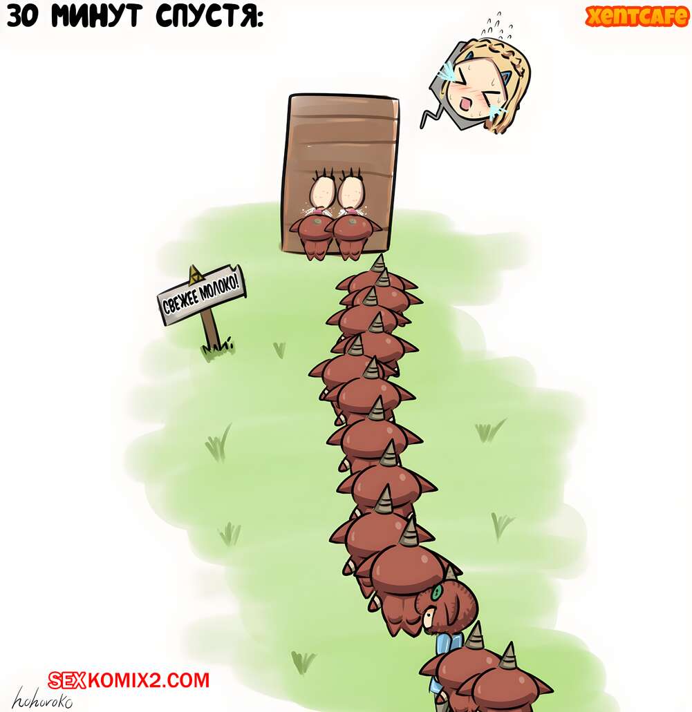 Порно комикс Головоломка с сиськами Горячая блондинка Зельда обладает огромными сиськами. Красотка сует их через деревянную стену, чтобы разные монстры могли их сосать и наслаждаться молочком.