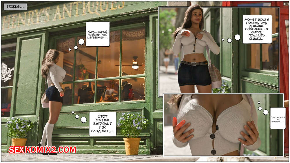 Порно комикс Кольцо Римской Императрицы. The Ring of the Roman Empres. Tab109 Юная брюнетка нашла маленький магазинчик и решила туда зайти, выставив на обозрение свои сиськи перед стариком продавцом. Девушка присмотрела себе старинное кольцо и решила его купить.