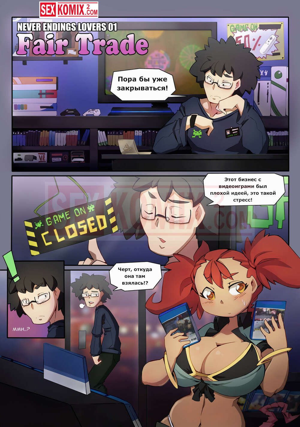 Порно комикс Бесконечные любовники. Dragoon Tequila. Девушка очень любит играть в видео игры, но денег у нее нет. За диски с новыми играми они рассчиталась с продавцом своей сочной киской.