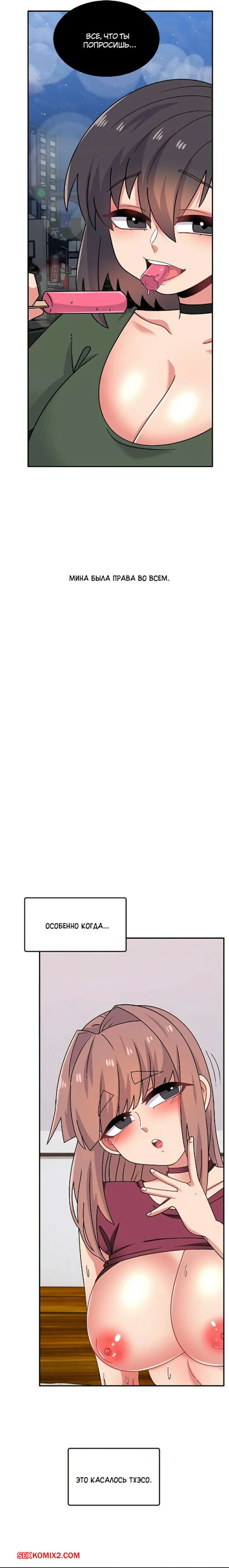 Порно комикс Мина. Часть 34 и 35 и 36 Горячие красотки надели сексуальные наряды, желая повеселиться со своим дружком. Девушки уложили парня на кровать и отсосали его большой хуй, после чего дали ему себя выебать.