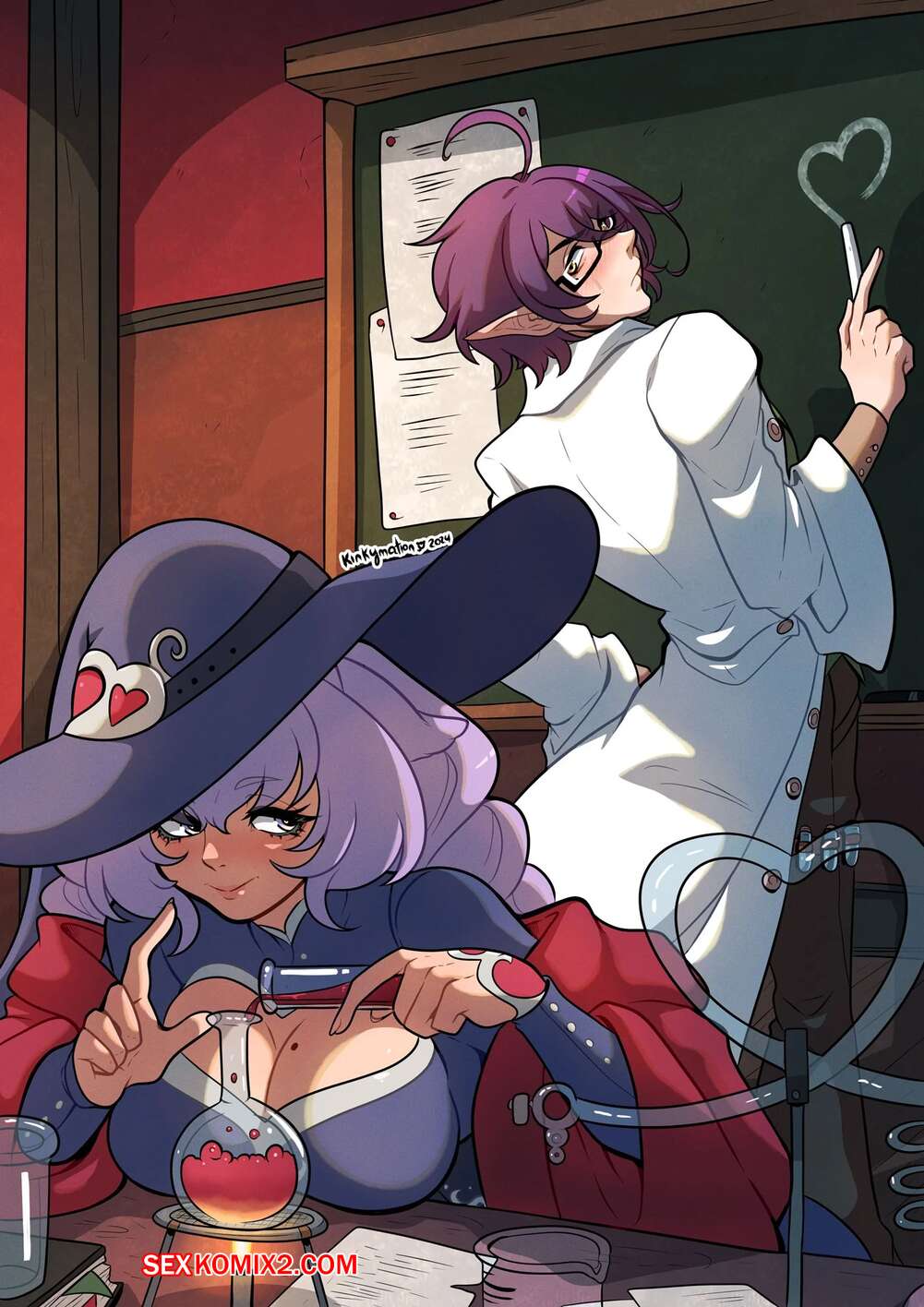 Порно комикс Алхимия любви. Love Alchemy. Kinkymation Горячая брюнетка была очень возбуждена и решила повеселиться со своим дружком ученым. Девушка возбудила парня шикарным телом, после чего дала ему себя выебать.