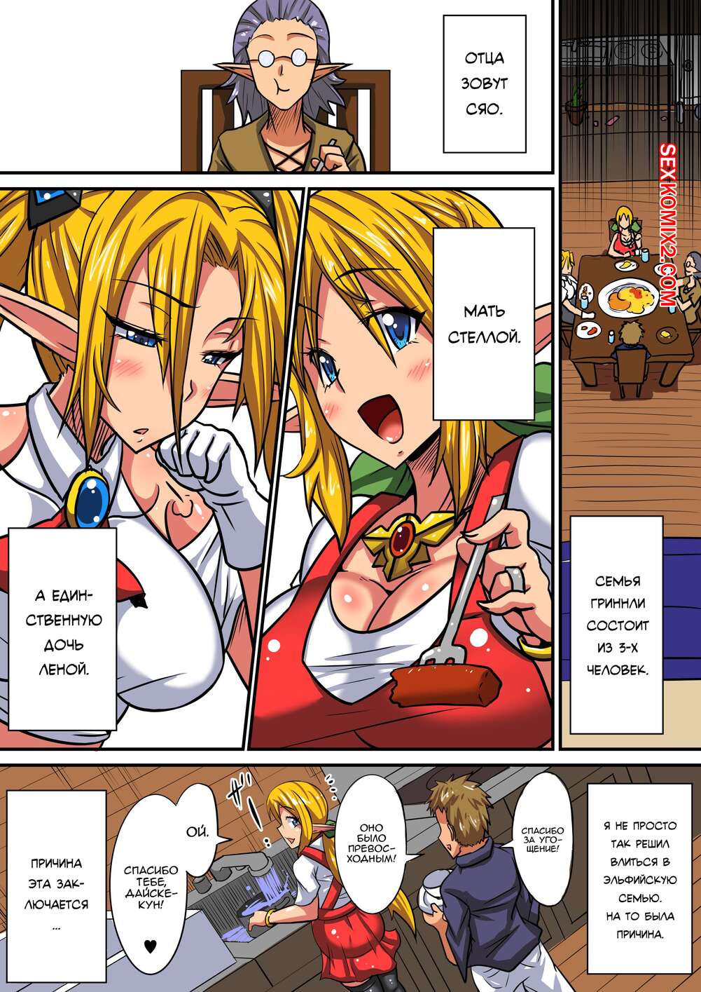 Порно комикс Elf Oyako to Pakopako Ibunka Kouryuu. Haneinu Горячая блондинка эльфийка застала своего дружка за дрочкой и возбудилась от размера его члена. Девушка разделась и отсосала хуй парня, после чего дала ему себя выебать.