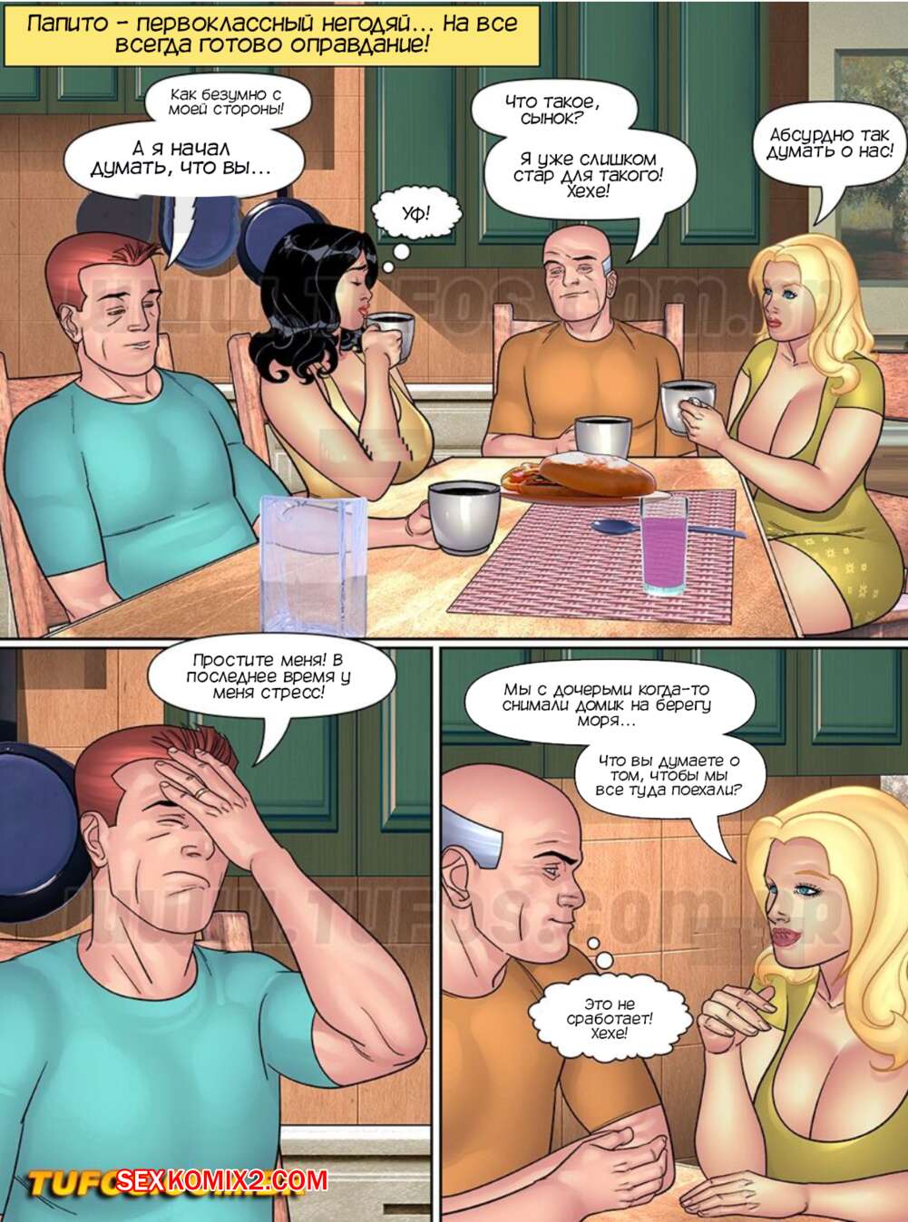 Порно комикс Папочка. Тесть извращенец. Часть 13. Tufos Элиза пригласила свою подругу с мужем и Папито отправиться на пляж, где они встретили дочь милфы с мужем. Когда Клариса и ее муж ушли, две парочки решили повеселиться и потрахаться на берегу.