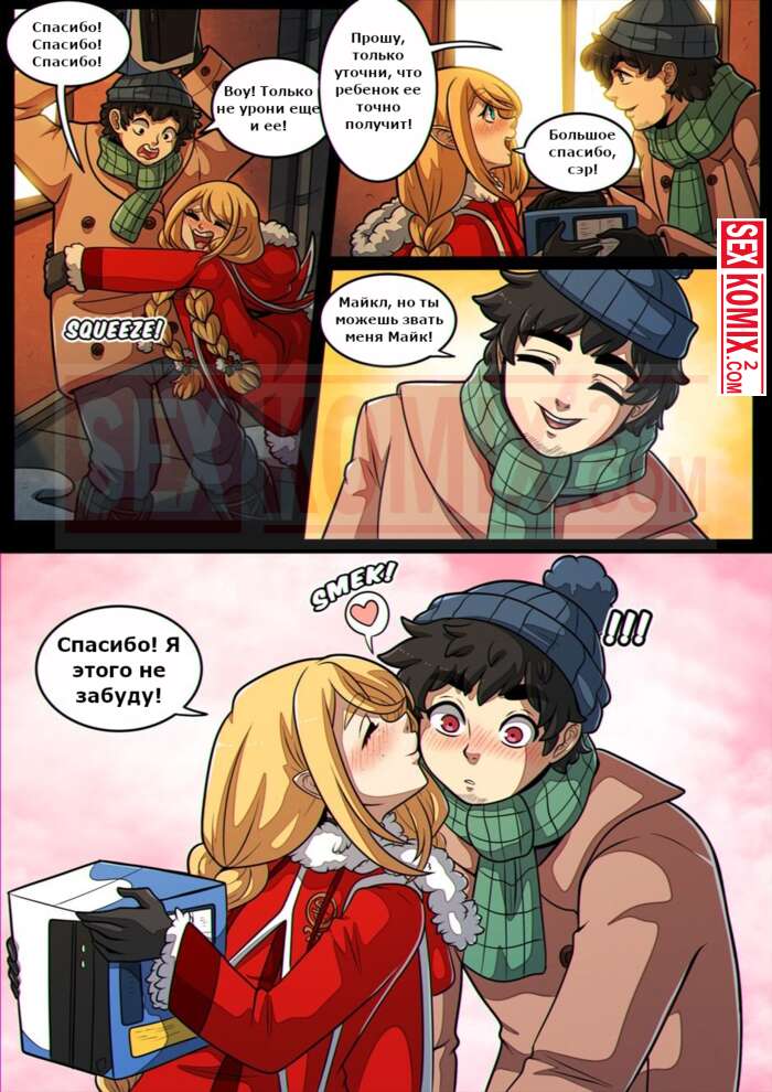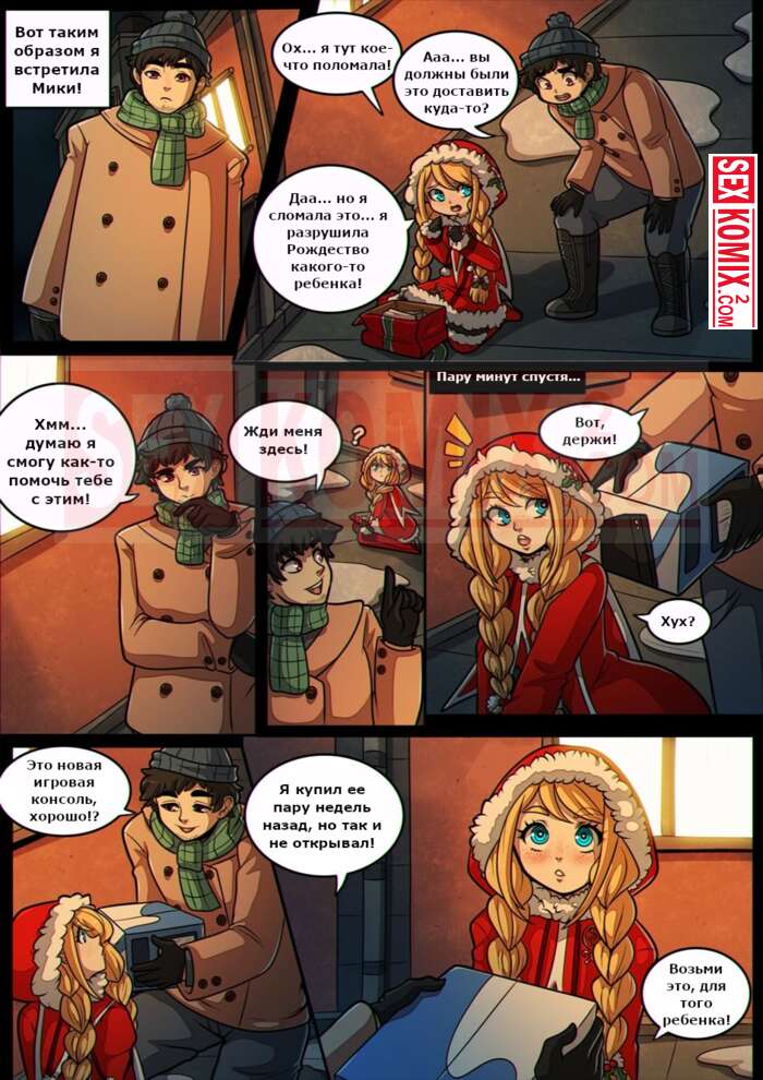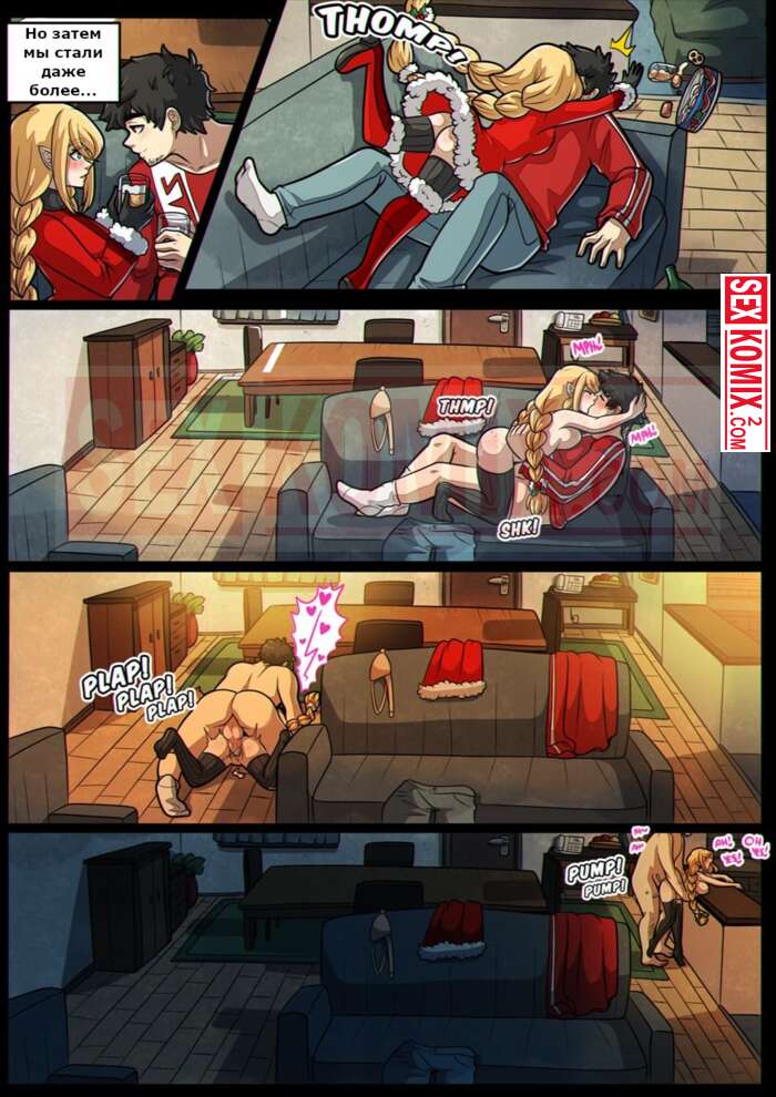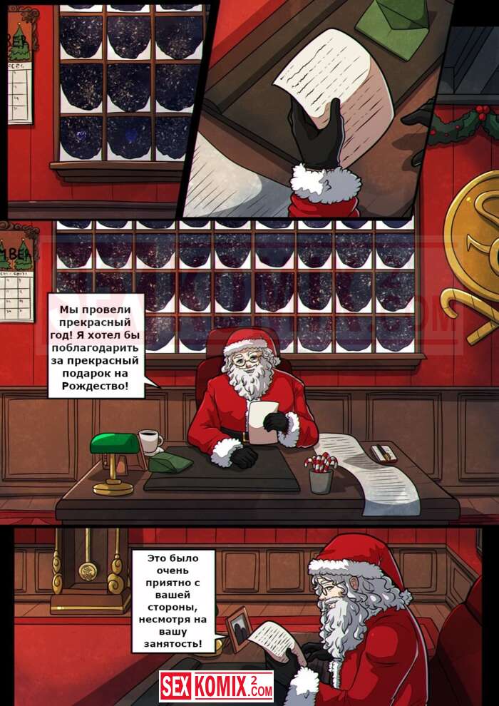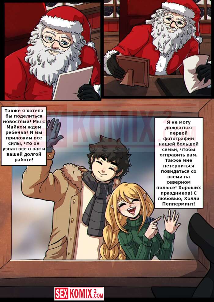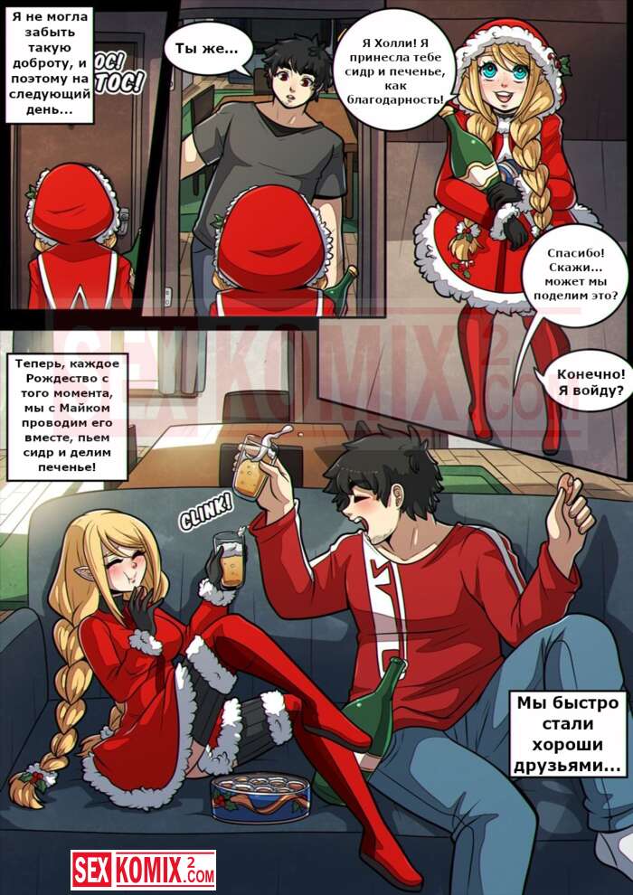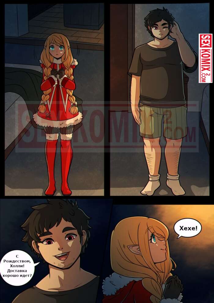 Порно комикс Праздники. Kinkymation. В дом зашла помощница Санты, чтобы оставить подарки. Но она отдала парню свою киску, это самый лучший подарок.