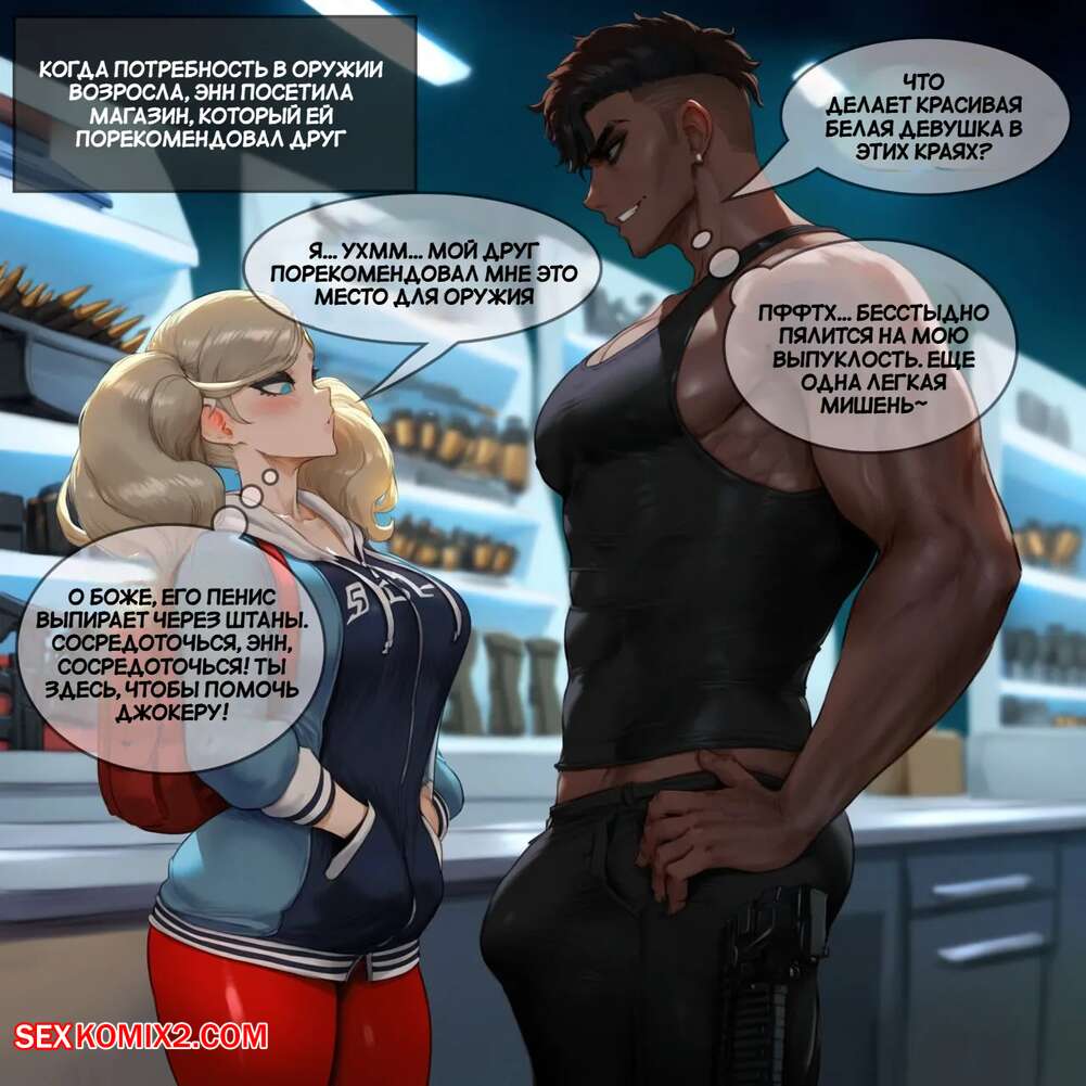 Порно комикс Persona 5. Анна Такамаки. Ann Takamaki. Potions. Горячая блондинка с шикарным телом встретилась с темнокожим парнем и была поражена его огромным хуем. Красотка встала на колени и отсосала хуй своего дружка, после чего дала ему себя выебать.