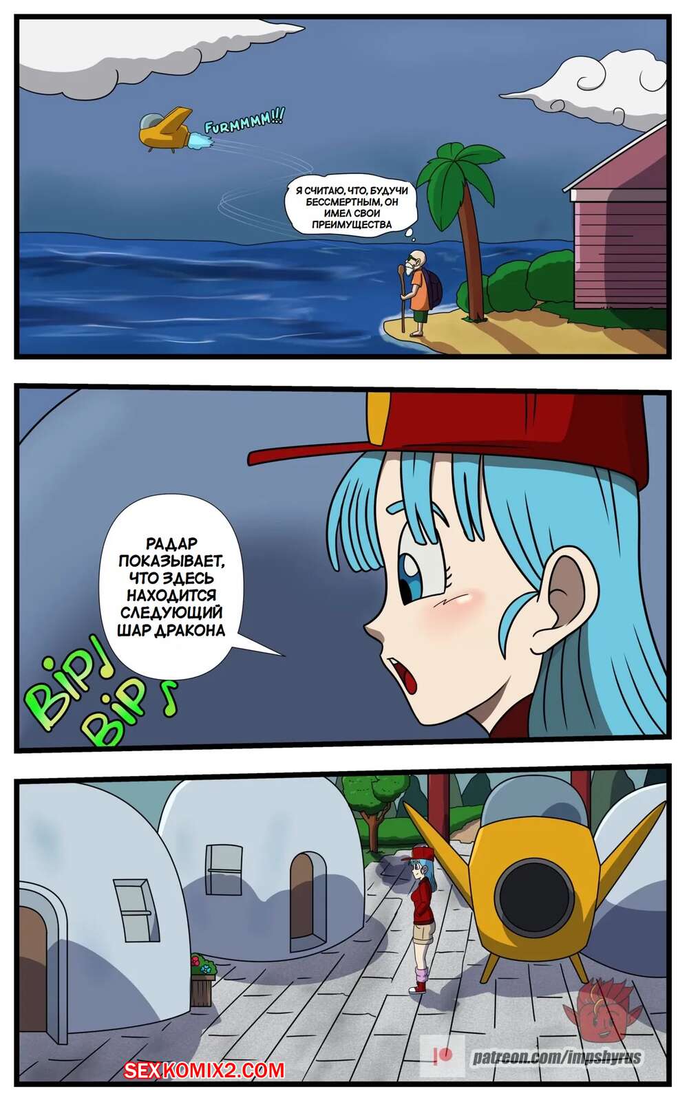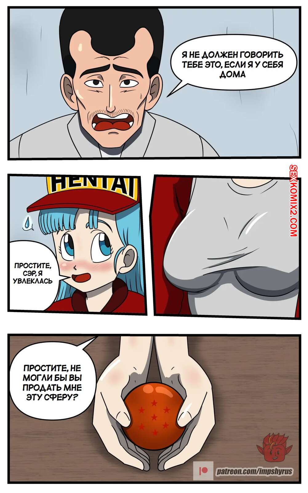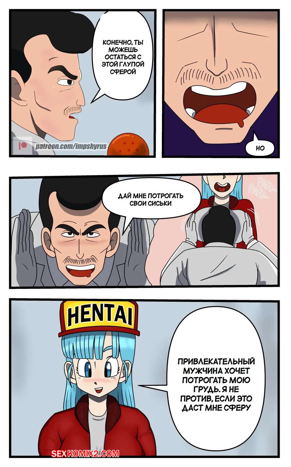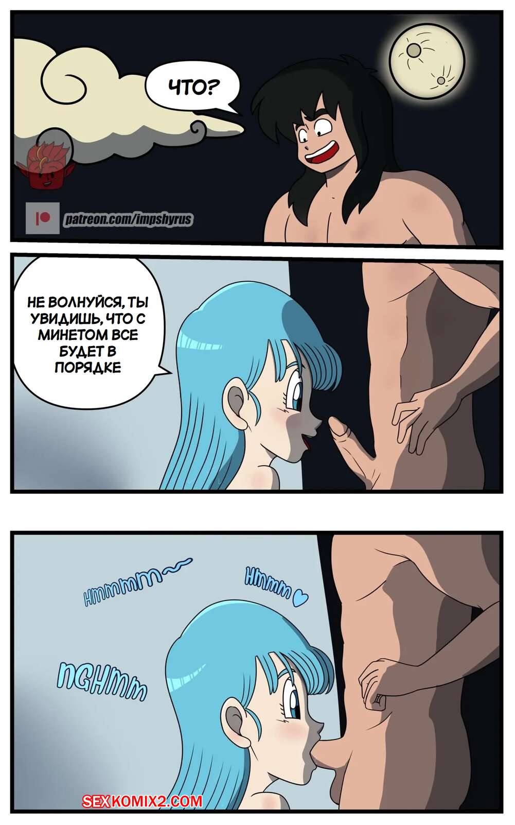 Порно комикс Dragon Ball. Исследование Бульмы. Часть 2. Bulmas Search. Impshyrus Горячая красотка Бульма была очень возбуждена и решила повеселиться со своим дружком. Девушка встала на колени и отсосала хуй парня, помогая ему кончить себе в ротик.