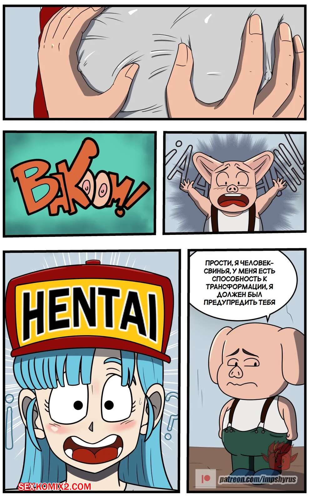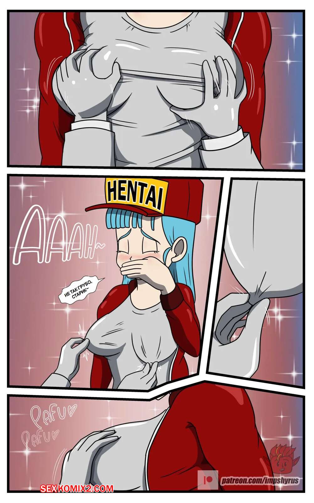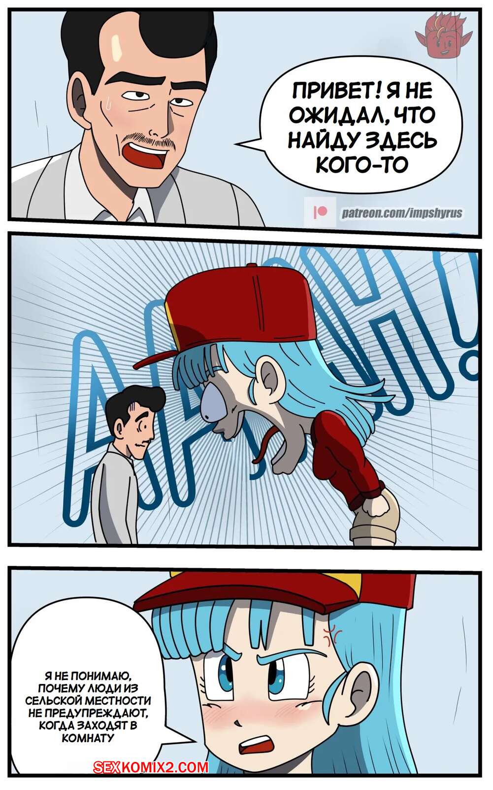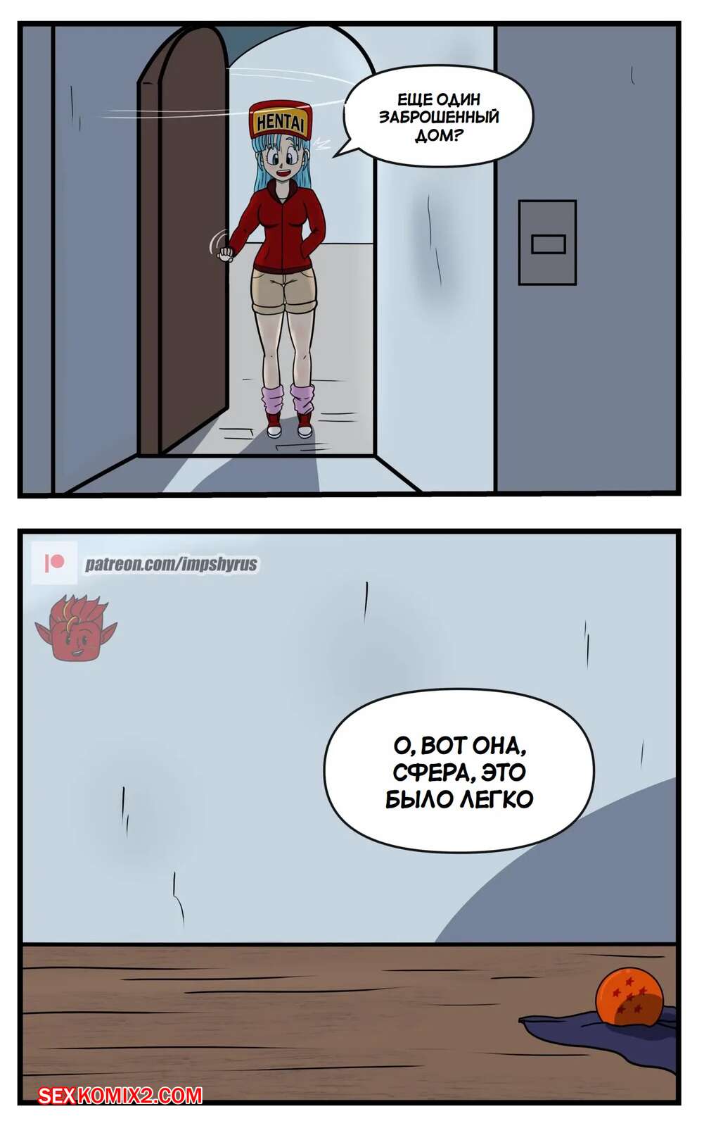 Порно комикс Dragon Ball. Исследование Бульмы. Часть 2. Bulmas Search. Impshyrus Горячая красотка Бульма была очень возбуждена и решила повеселиться со своим дружком. Девушка встала на колени и отсосала хуй парня, помогая ему кончить себе в ротик.