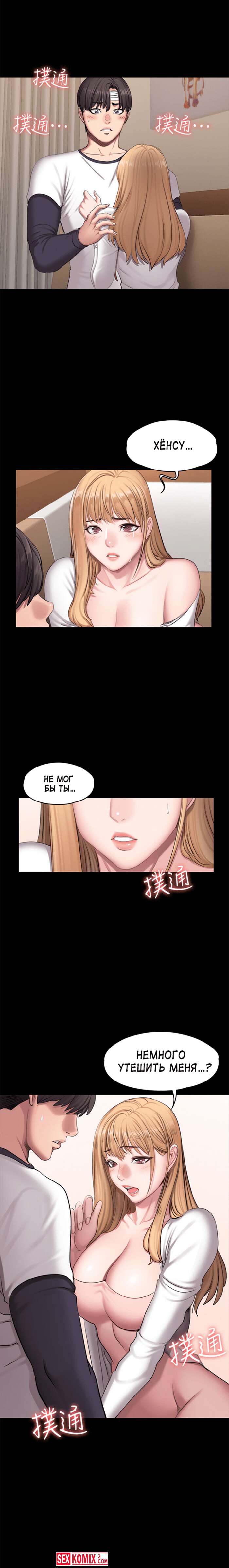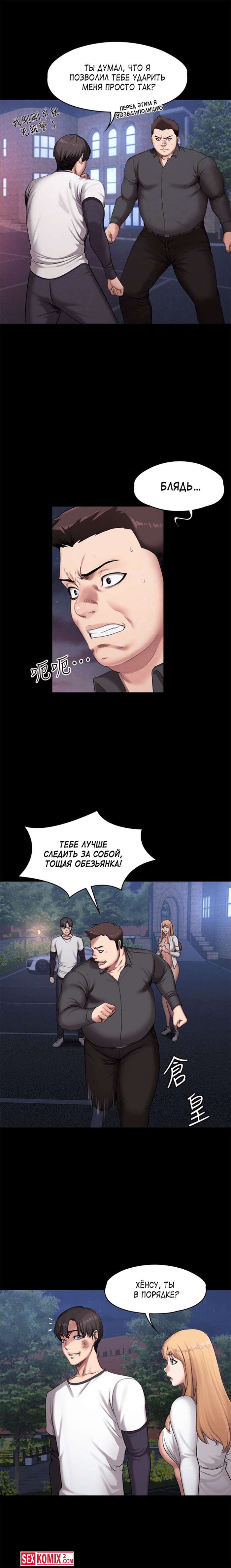 Порно комикс Фитнес. Части 58 и 59. Fitness. На улице к девушке стал приставать хулиган, но парень защитил красотку и прогнал его. Девушка пригласила своего спасителя домой на пару палок чая.
