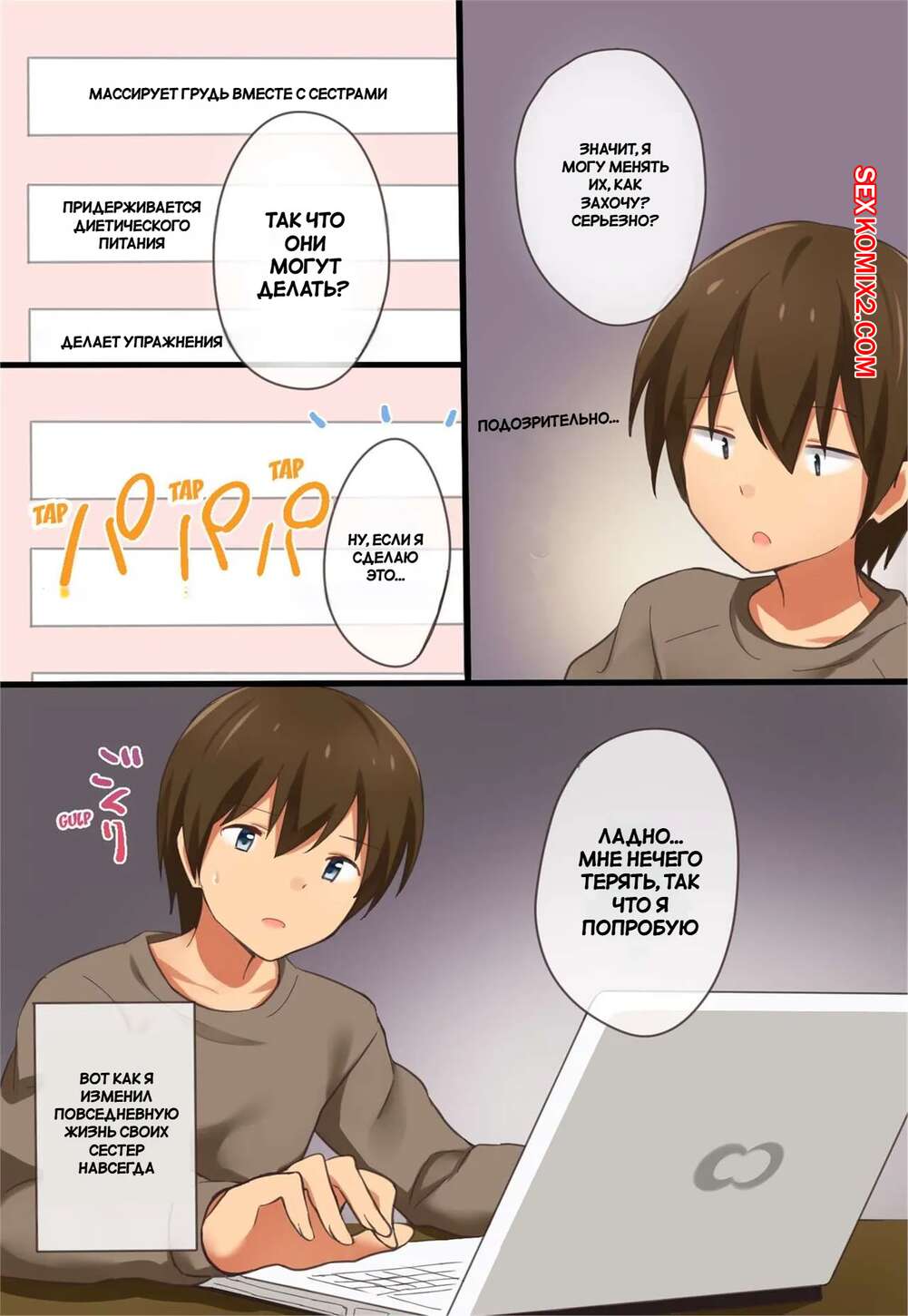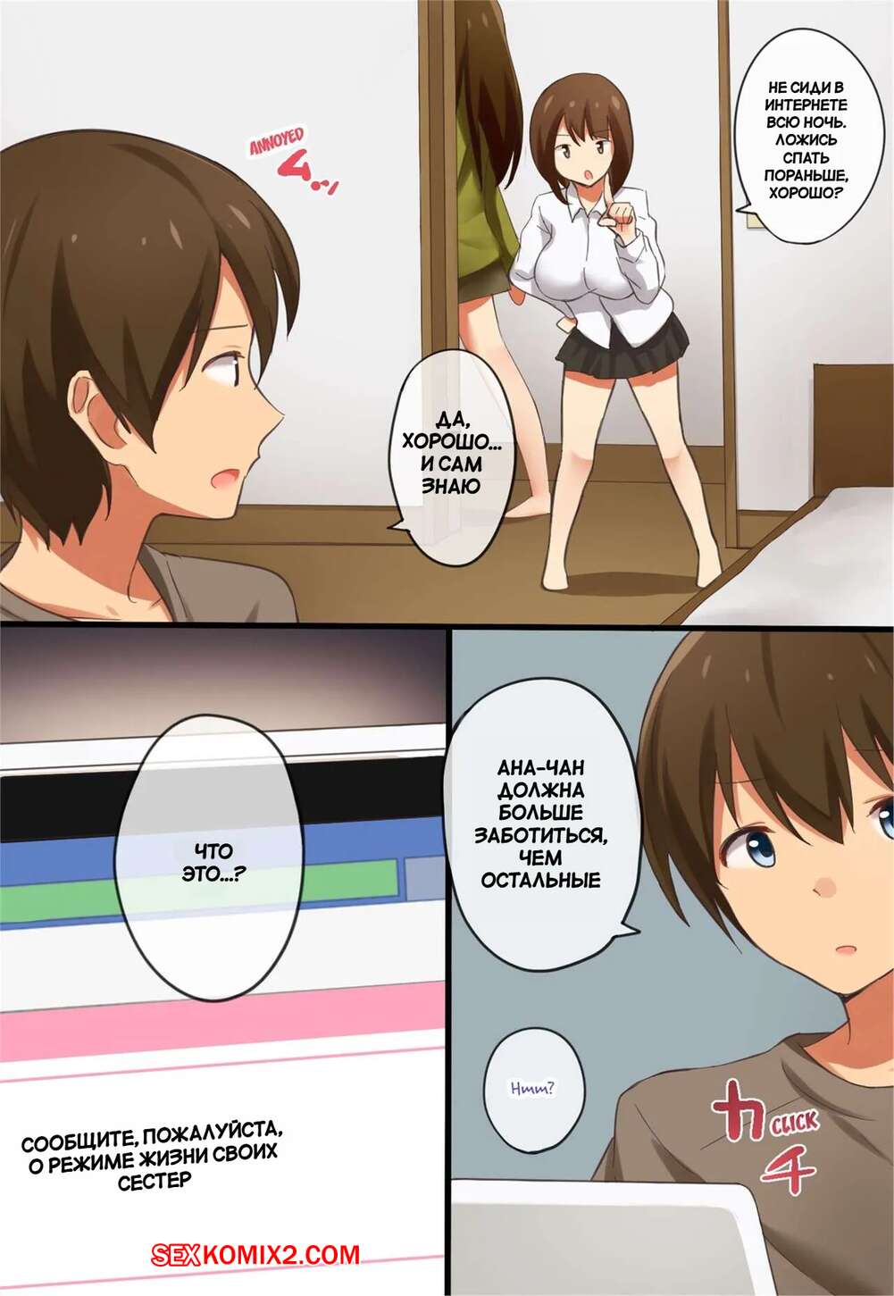 Порно комикс Привычки моих старших сестер не поддаются искоренению Горячие красотки с шикарными телами были очень возбуждены и решили повеселиться со своим младшим братиком. Девушки разделись и отсосали хуй парня, после чего дали ему себя выебать.