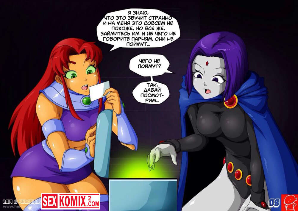Порно комикс Юные Титаны и Магический Кристалл. Рейвен и Старфаер остались наедине, они исследовали магический кристалл. Он странно подействовал на девушек, увеличив их сиськи до огромных размеров.