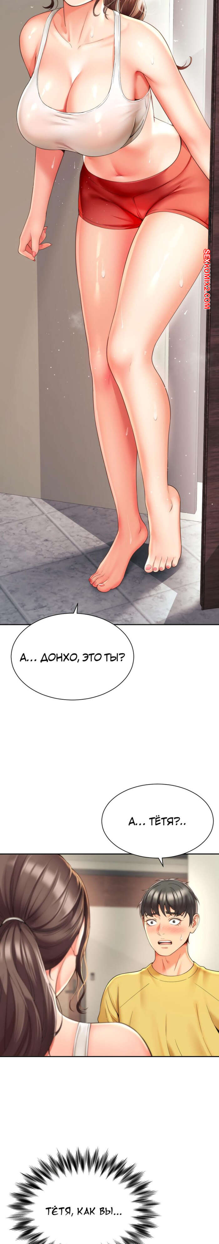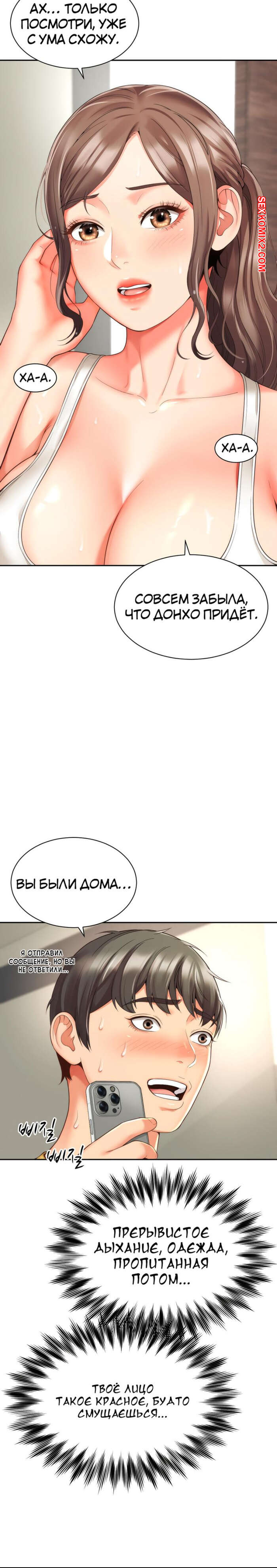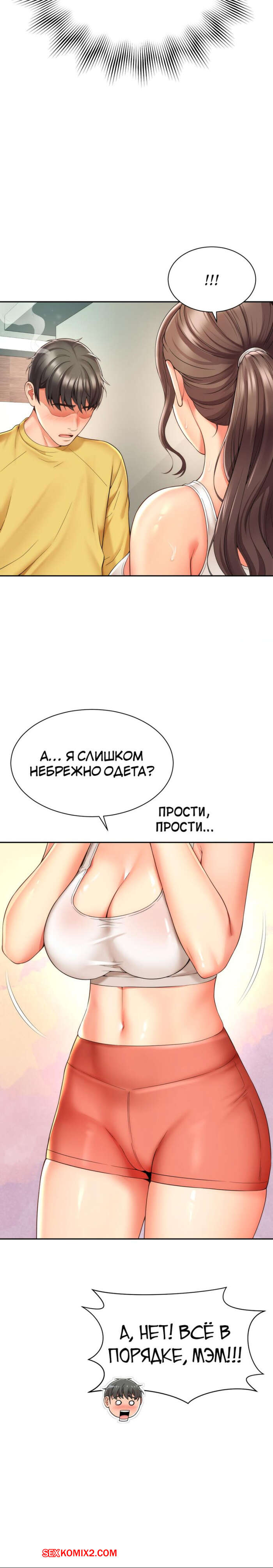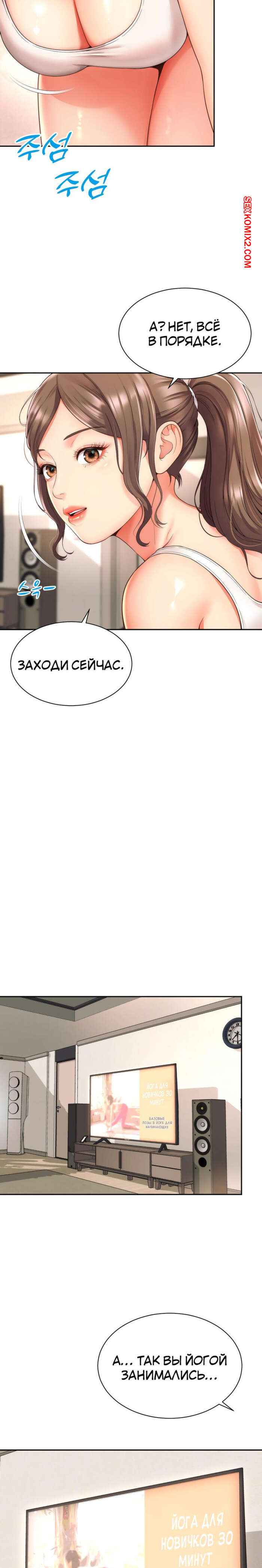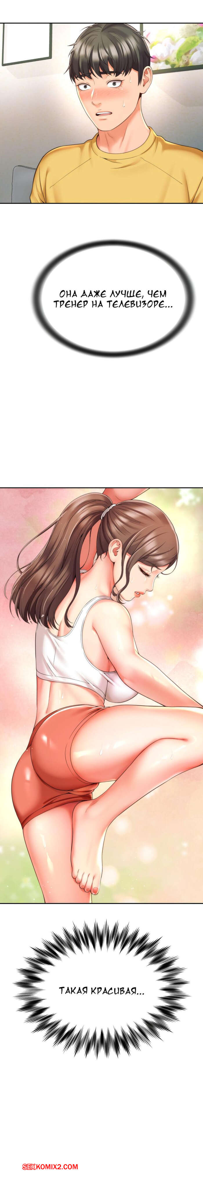 Порно комикс Его мама моя. Часть 1 и 2 и 3. Friend Mom and friend fuck Горячая милфа занималась йогой и попросила молодого парня ей помочь. Он пристроился сзади к девушке и стал на нее давить, от чего у него встал хуй и он представил, как ебет пизденку девушки.