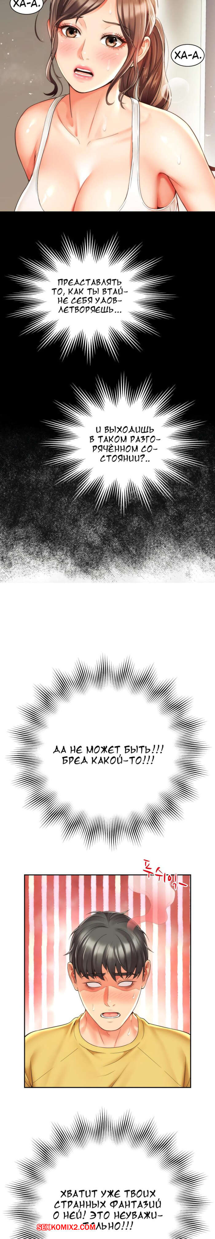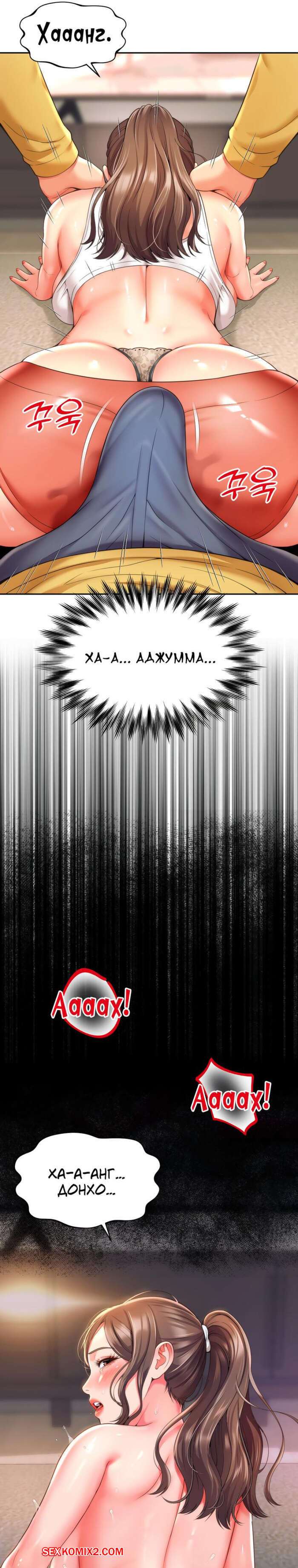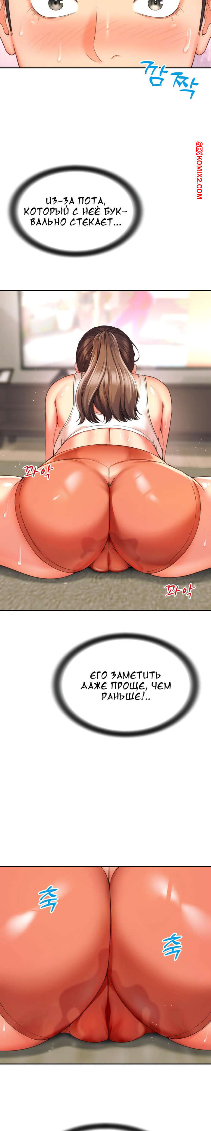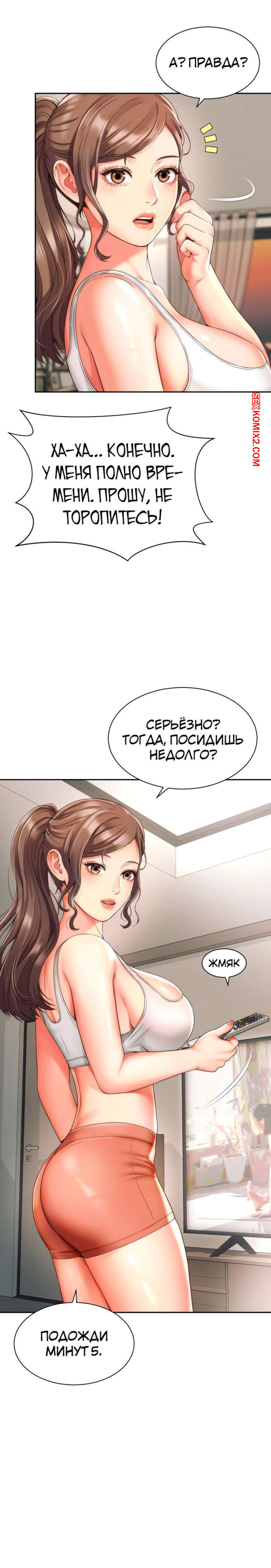 Порно комикс Его мама моя. Часть 1 и 2 и 3. Friend Mom and friend fuck Горячая милфа занималась йогой и попросила молодого парня ей помочь. Он пристроился сзади к девушке и стал на нее давить, от чего у него встал хуй и он представил, как ебет пизденку девушки.