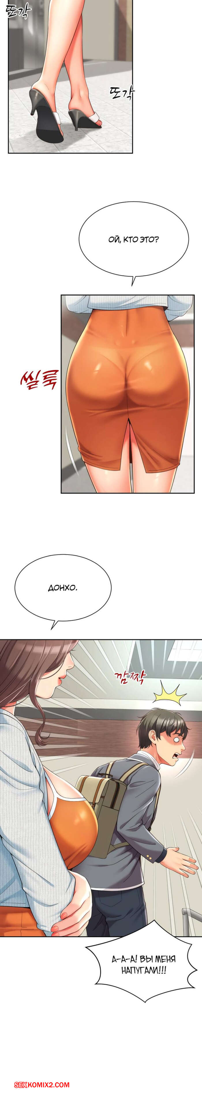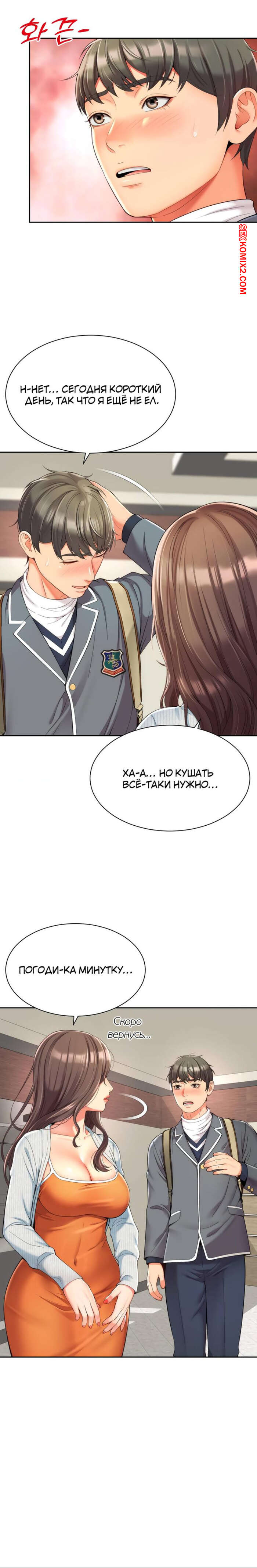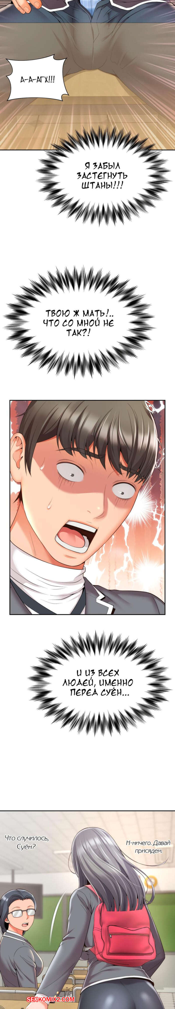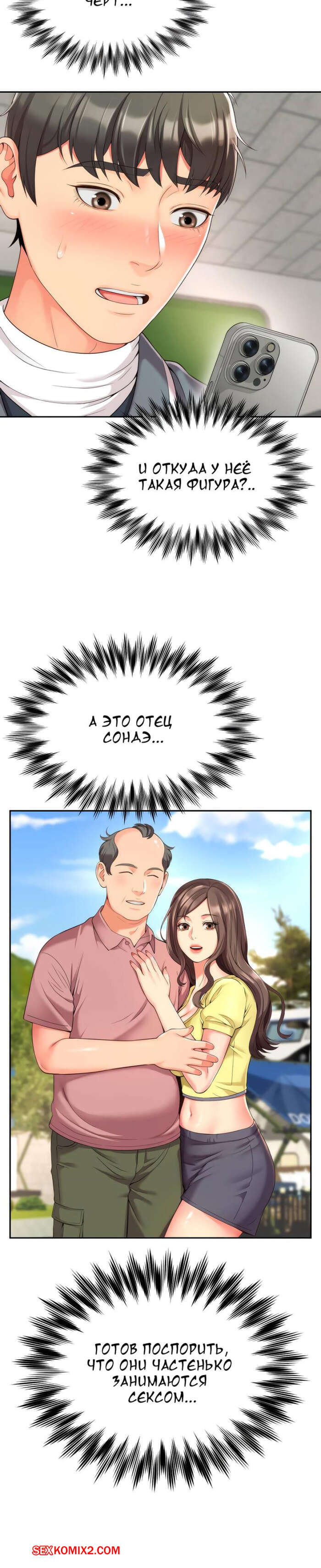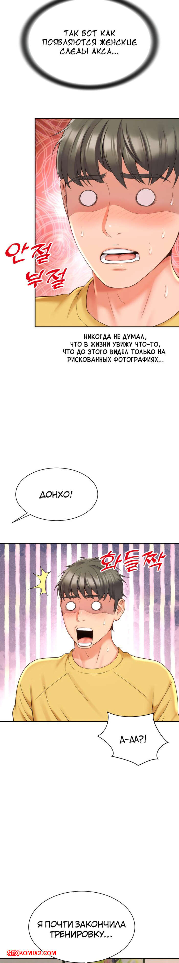 Порно комикс Его мама моя. Часть 1 и 2 и 3. Friend Mom and friend fuck Горячая милфа занималась йогой и попросила молодого парня ей помочь. Он пристроился сзади к девушке и стал на нее давить, от чего у него встал хуй и он представил, как ебет пизденку девушки.