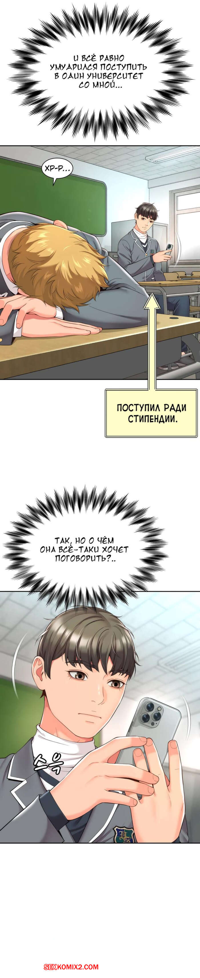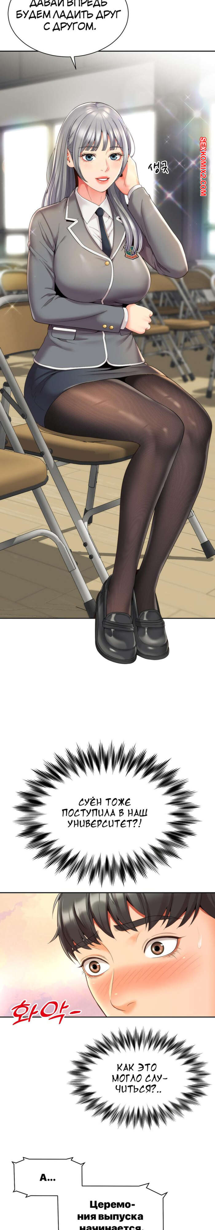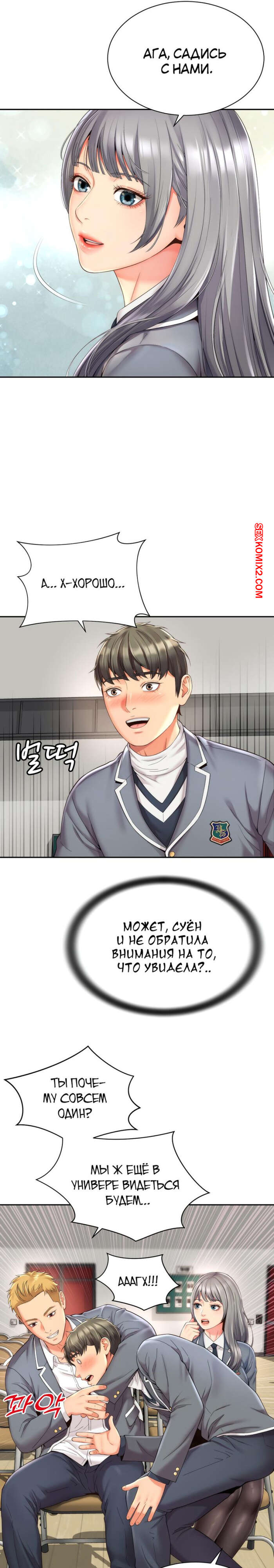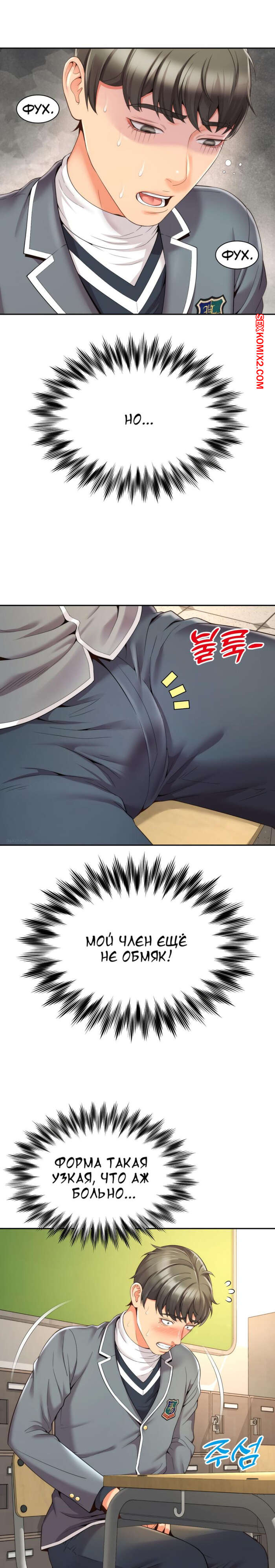 Порно комикс Его мама моя. Часть 1 и 2 и 3. Friend Mom and friend fuck Горячая милфа занималась йогой и попросила молодого парня ей помочь. Он пристроился сзади к девушке и стал на нее давить, от чего у него встал хуй и он представил, как ебет пизденку девушки.